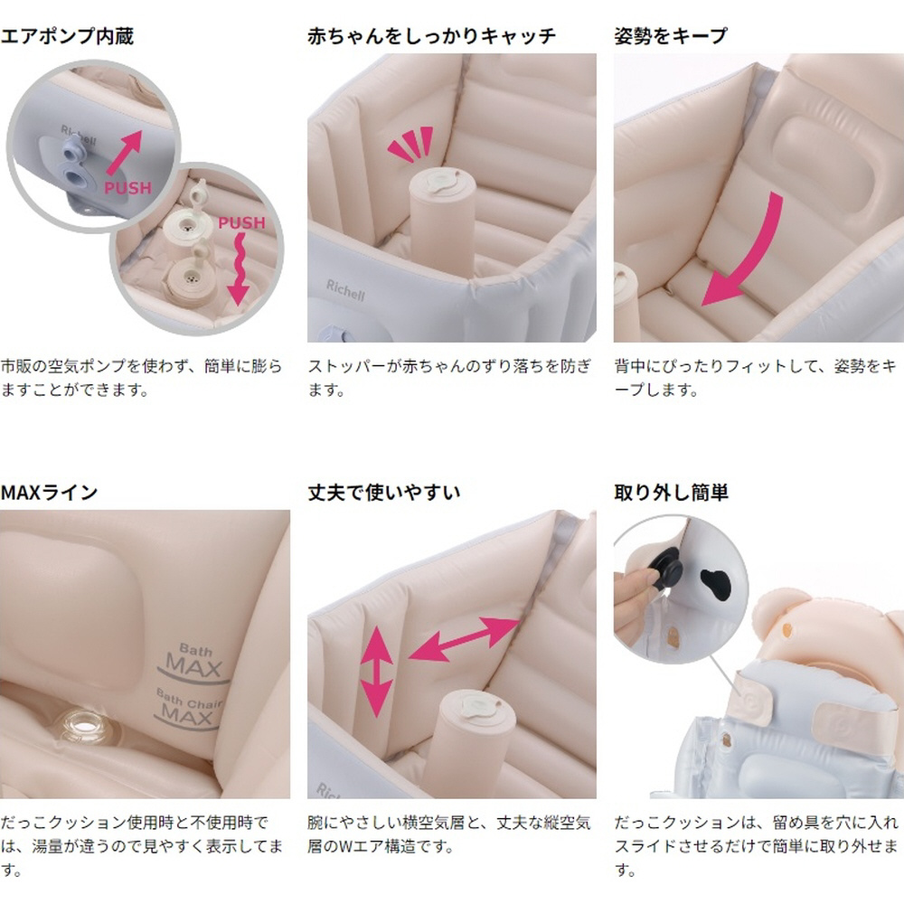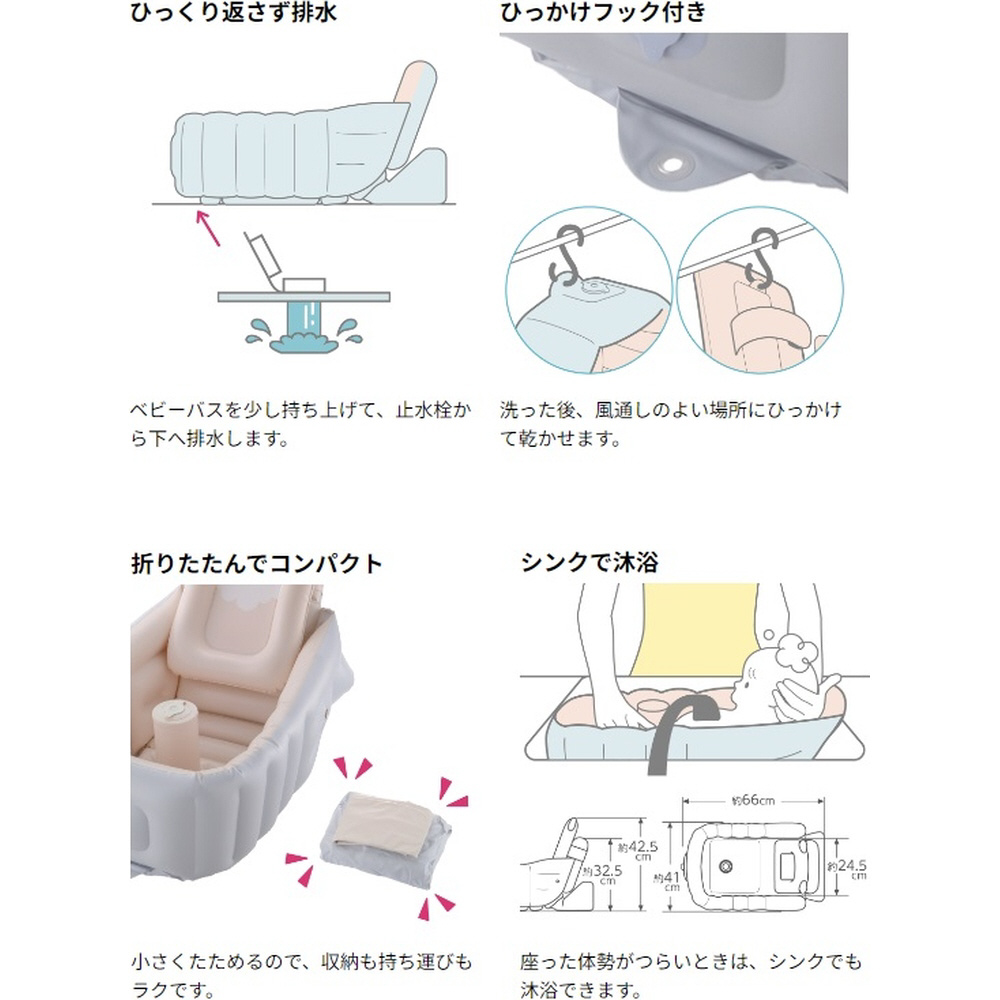 成長に合わせて長く使える。ベビーバス、バスチェアとして使えます。