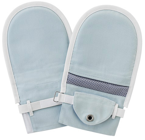 危険な行為やおむついじりに対応する、アイデアホック採用の介護用手袋です。