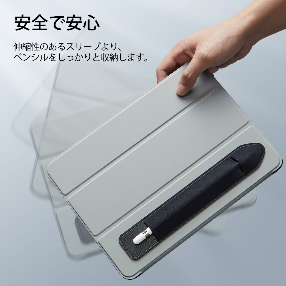 伸縮性のあるタッチペンポケットのため、アップルペンシルをしっかり包み込みながらも、取出しや収納が楽々簡単です。