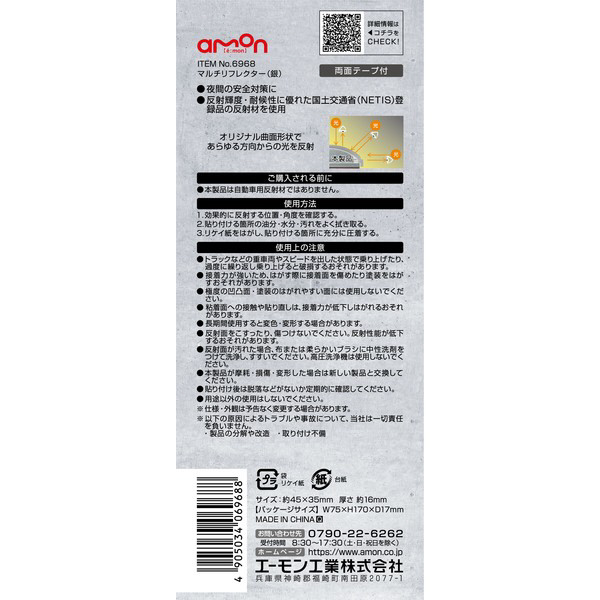 | 商品名 | 6968 マルチリフレクター(銀色) サイズ:約45mm×35mm厚さ約15mm 銀 6968 |