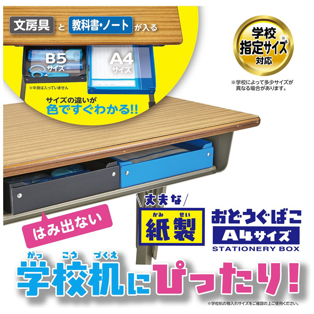 紙製で割れにくい学校机にぴったり、机からはみ出ないおどうぐばこ