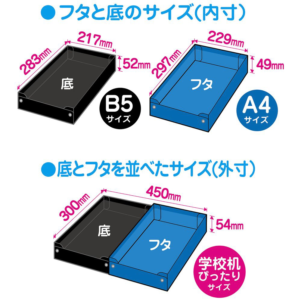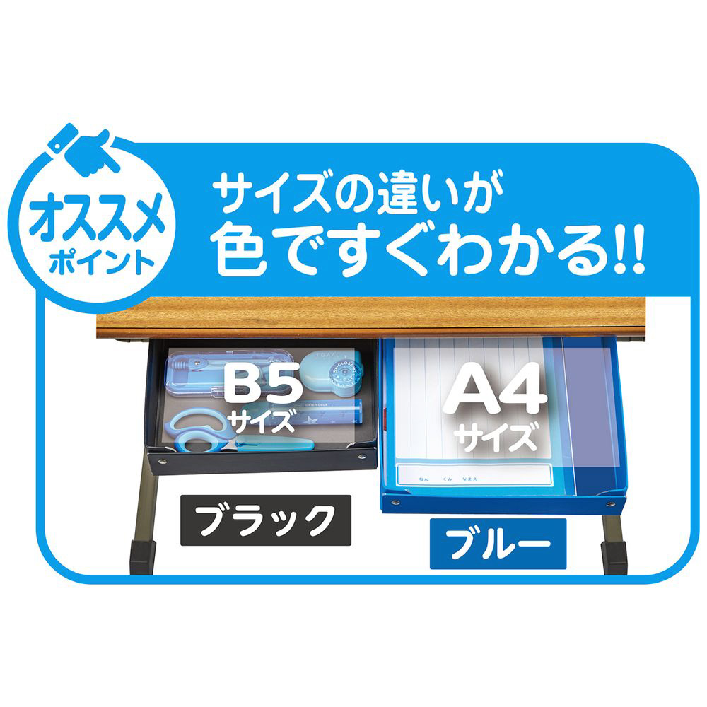 ・サイズの違いは色ですぐにわかる(文房具と教科書・ノートが入る底B5・フタA4サイズ)