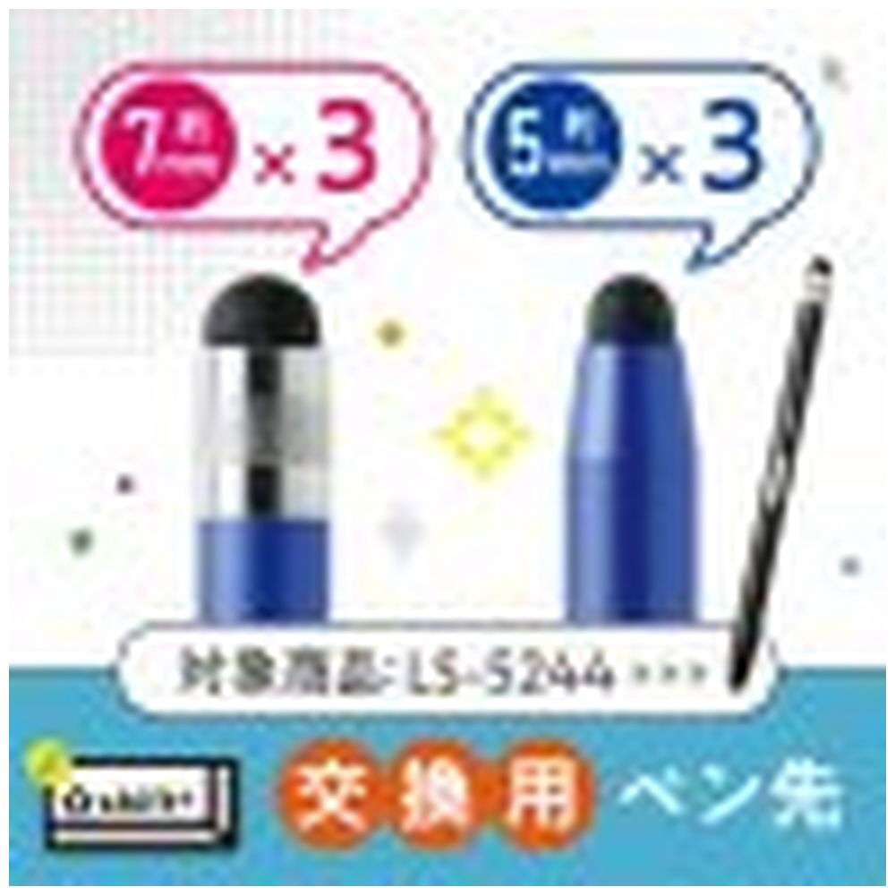 スクールタッチペン(LS-5244)用の交換用ペン先です。多機種に対応する、2サイズのペン先。約7mmと約5mmの2サイズ各3個入!
