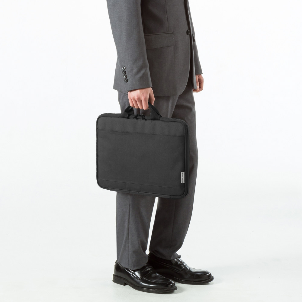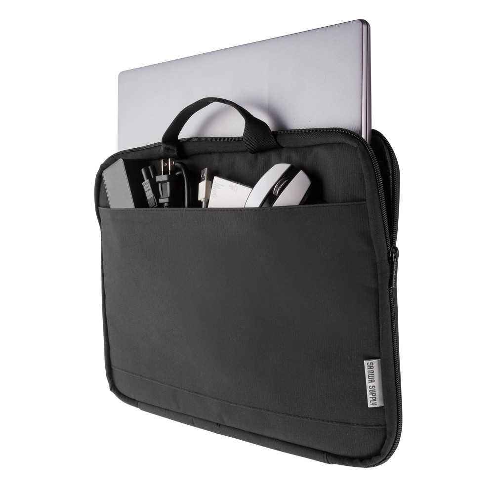 持ち運びや出し入れに便利な取っ手付きのスリムインナーケース。14インチワイド対応・ブラック。