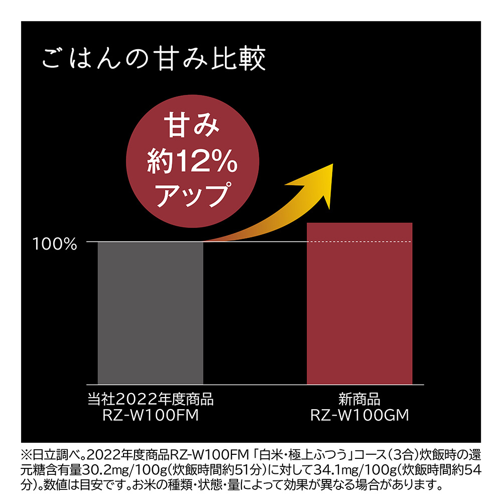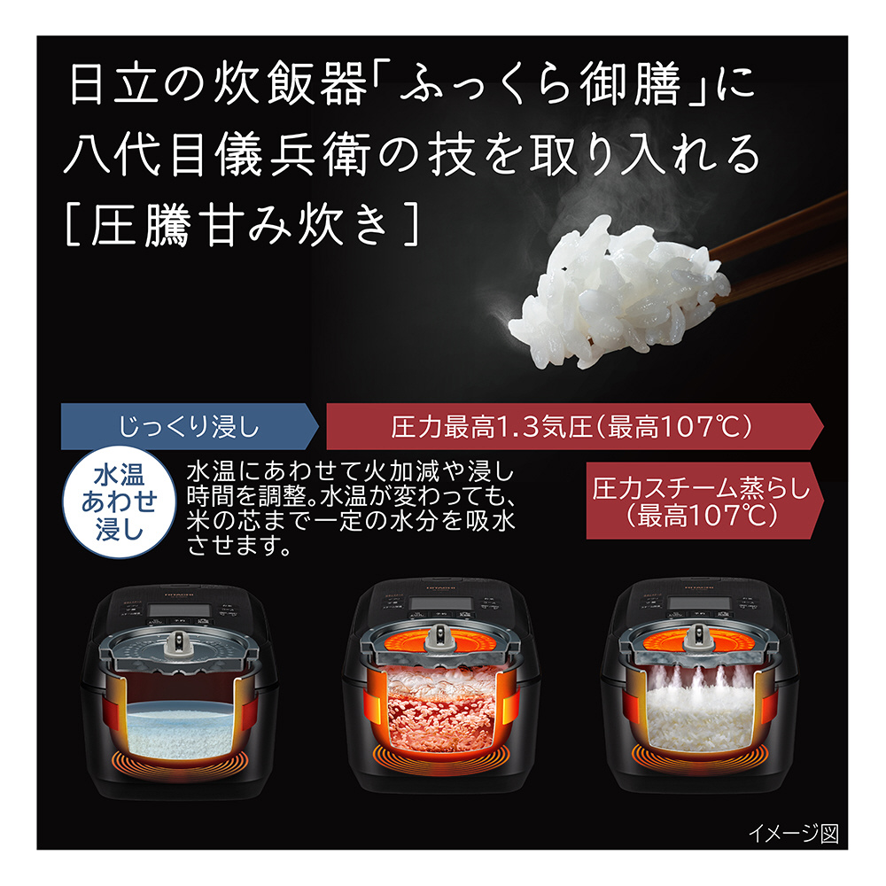 大火力で沸騰、圧力スチームで蒸らす「圧騰甘み炊き」