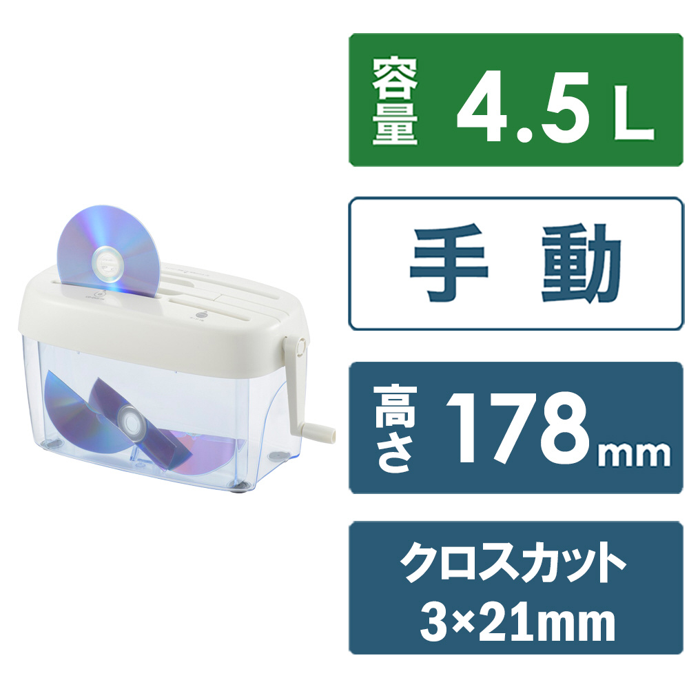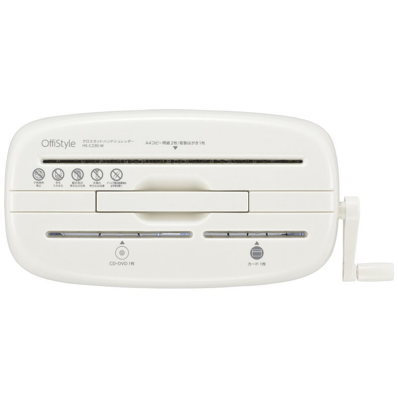 | 商品名 | ハンドクロスカットシュレッダー 大容量タイプ ホワイト HS-C230-W [クロスカット /A4サイズ /CDカット対応] |