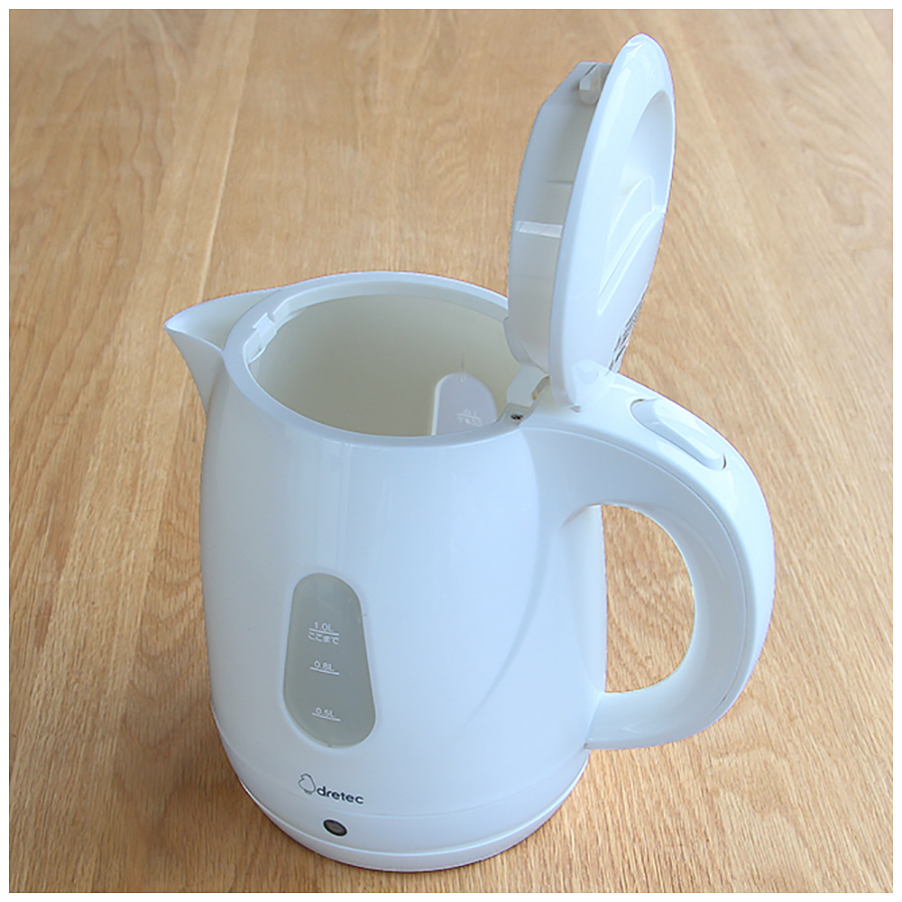 お手入れ簡単、安全機能付きの1.0L電気ケトル。