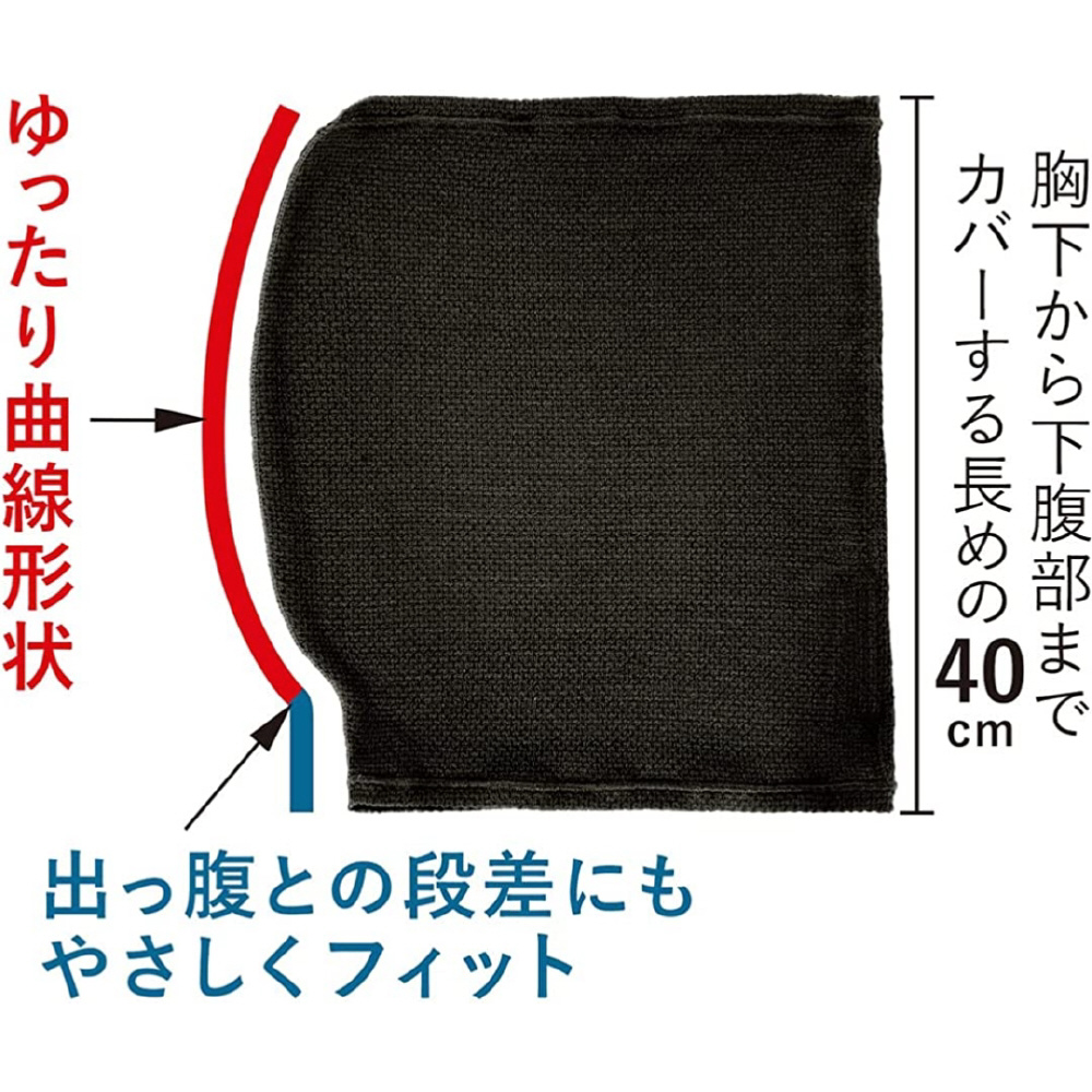 出っ腹の人は、朝起きると服がめくれ上がってお腹が丸出しになっていませんか?「出っ腹巻き」はお腹まわりがゆったり曲線形状になっており、お腹のふくらみに合わせて縫製されています。