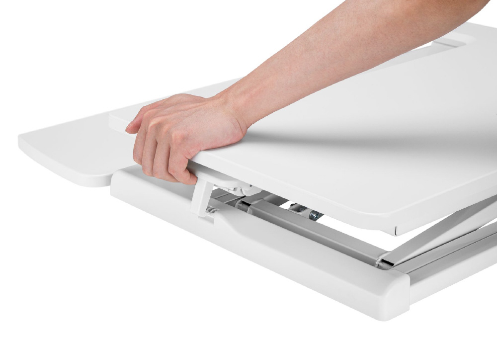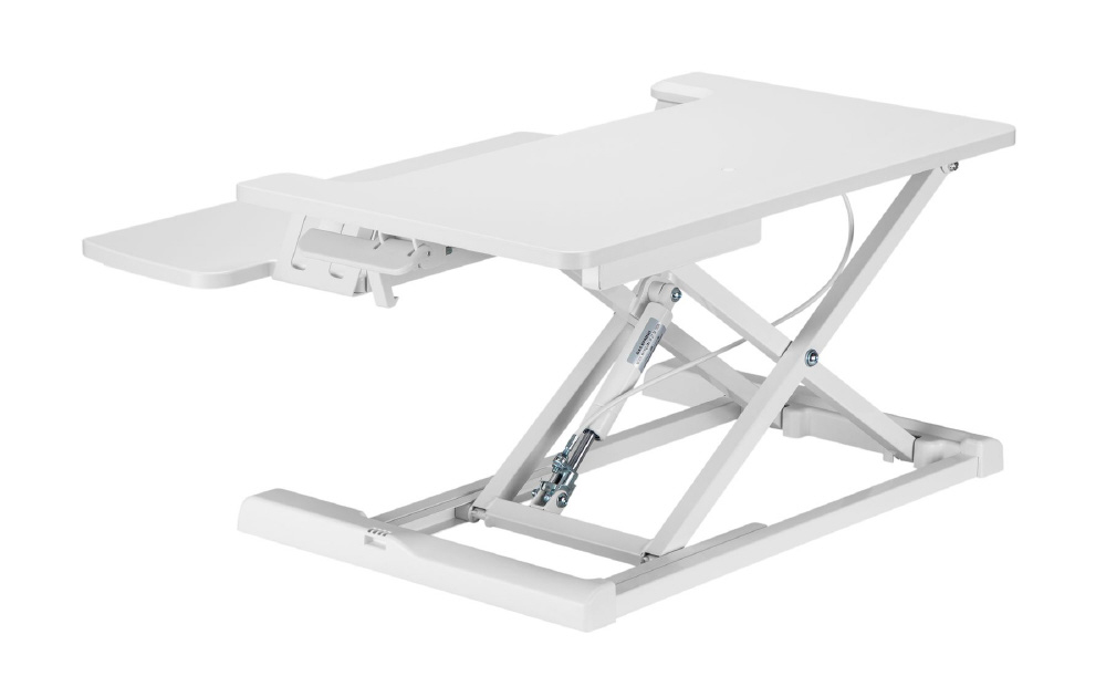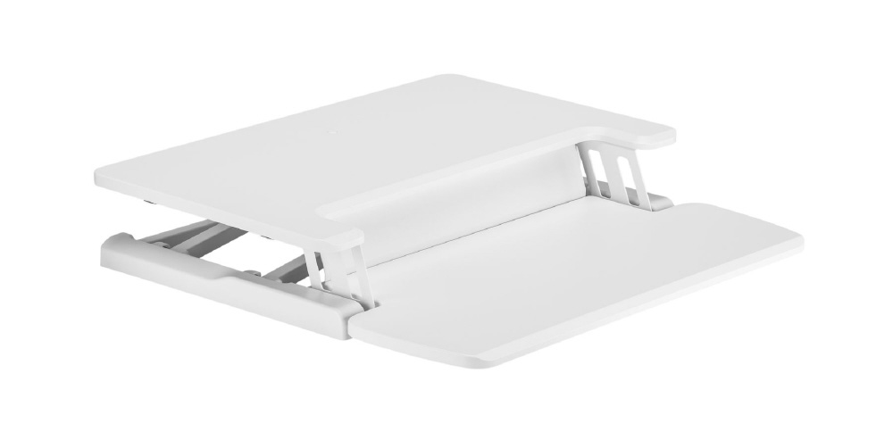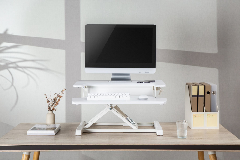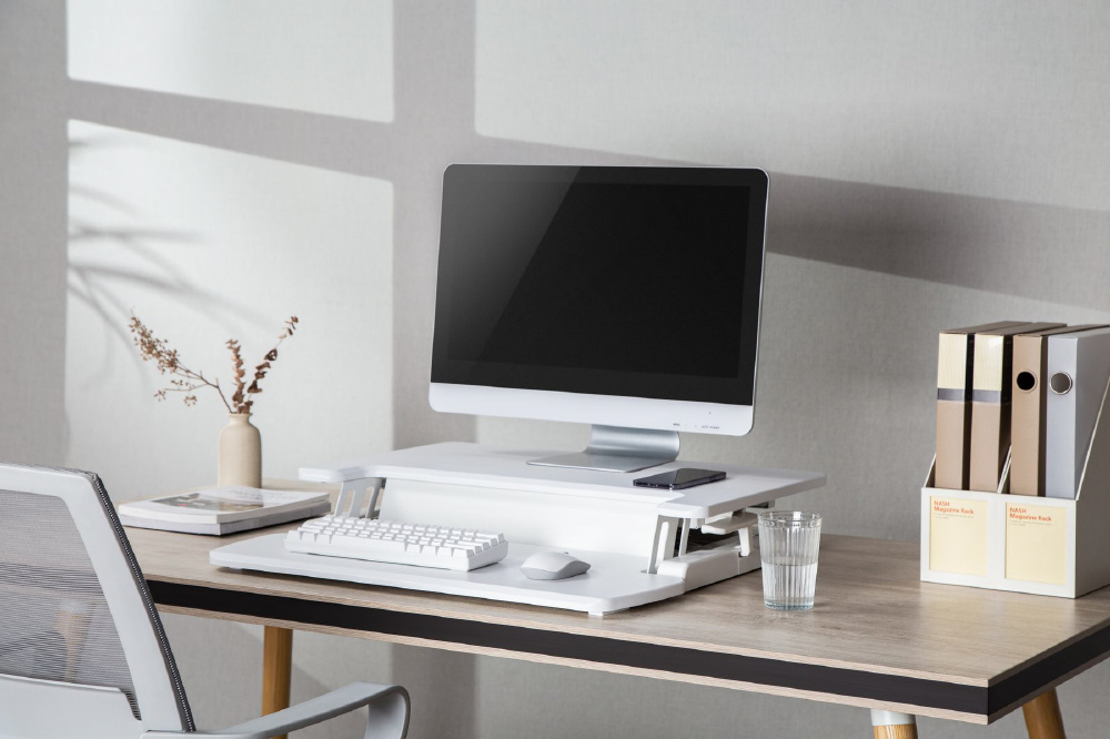 いつものデスクに置くだけ。限られたワークスペースの中で立ったり座ったり、状況に合わせてワークスタイルを選択できるDMM.make卓上昇降デスク。