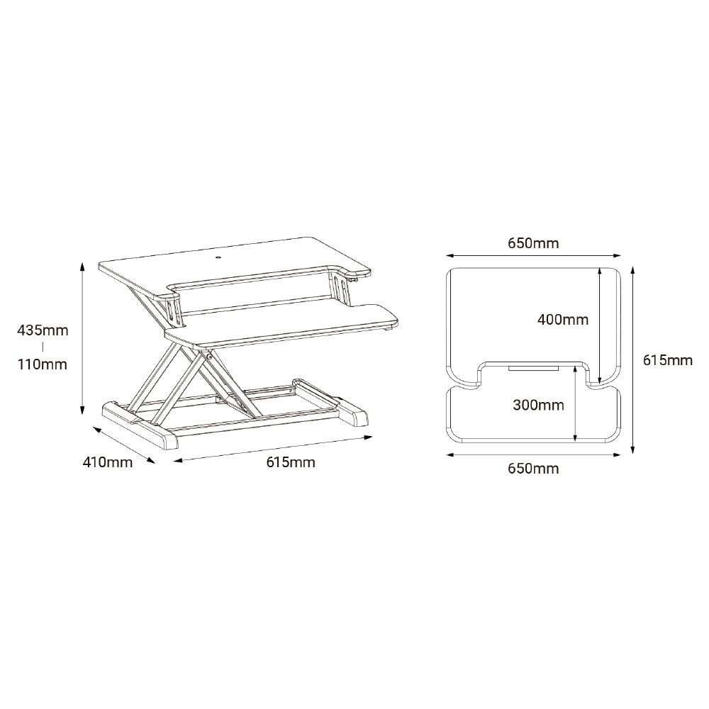 | 仕様1 | [天板サイズ]約W650xD400mm [天板耐荷重]15kg [キーボードトレイ]約W650xD300mm [キーボードトレイ耐荷重]2kg [昇降幅]約110〜435mm(無段階) [昇降構造]ガス式 [本体サイズ]約W650xH435xD615mm(H110〜435mm 無段階調整) [本体重量]約10.3kg |