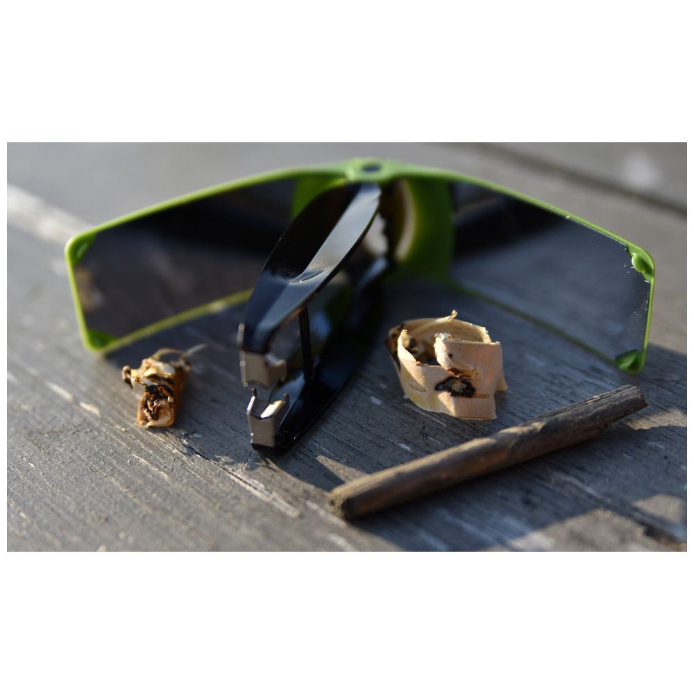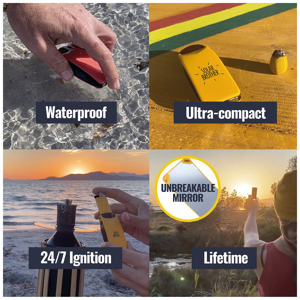 サンケースギアのデザインは、ライターケースとしても使用可能な設計のため、太陽光エネルギーだけでなくすべての天候で24時間点火可能です。