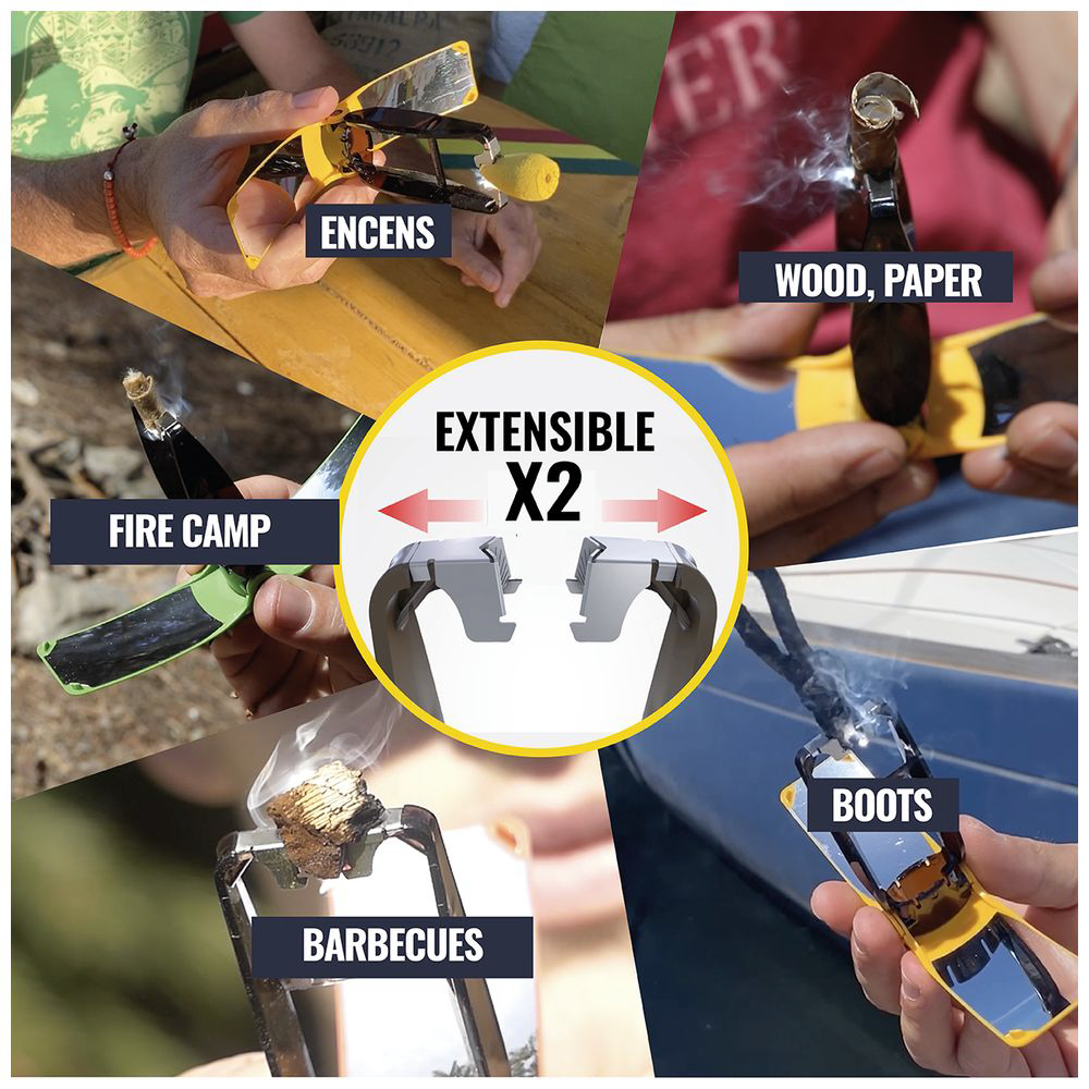 サンケースギアは、あらゆる種類の燃料を点火します。:木材、茶色の紙、火口、タバコ、線香、わら、小枝、木炭、