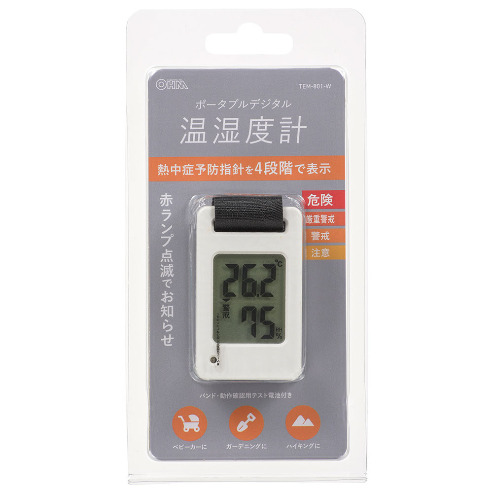 ポータブルデジタル温湿度計 ホワイト TEM-801-W [デジタル]