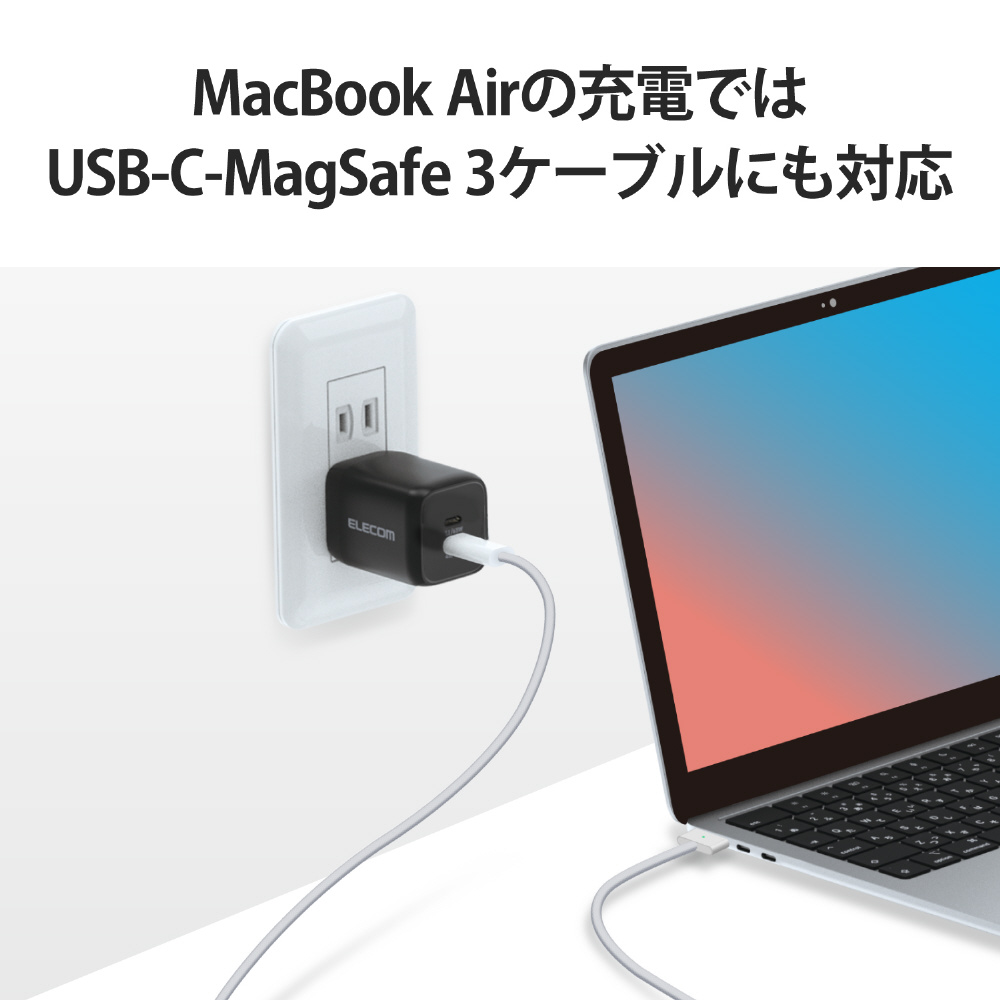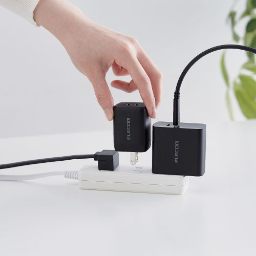USB Type-C(TM)(USB-C(TM))ポートを2ポート搭載し、iPhoneなどのスマートフォンとWindowsなどのノートパソコンを2台同時充電できるUSB AC充電器です。小型・軽量なので外出や出張などの際の持ち運びに便利です。