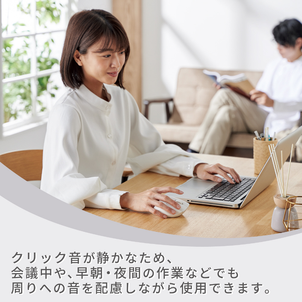 手になじむ、暮らしになじむ。生活空間に溶け込むマウス“SHELLPHA”(シェルファ)です。貝がらが持つやわらかな丸みとナチュラルな色彩をモチーフに、木材や白壁などのインテリアに寄り添うボディに仕上げました。手と手首に負担のかかりにくい有機的なエルゴノミクス形状、暮らしにやさしい静音仕様でどんなシーンでも使いやすい、サイドボタン・チルトホイール搭載無線2.4GHzモデルです。