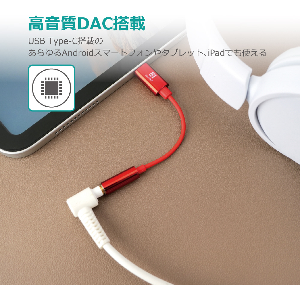 3.5mmジャックのヘッドフォンをUSB Type-C端子のAndroid、iPadで使用できる変換ケーブル