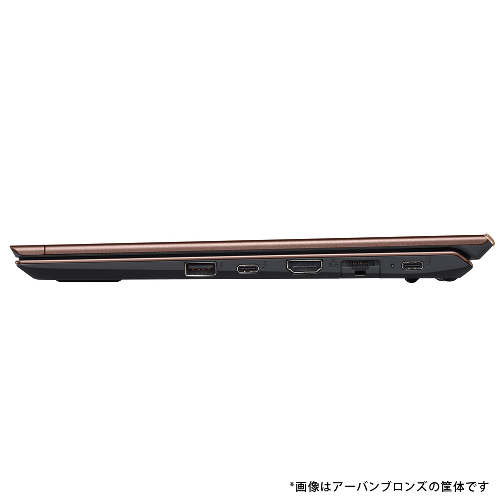 強靱さと軽さを兼ね備えたカーボン素材を用いることで、約929gと軽量ながら、モバイルPCに必須の高剛性と、スタイリッシュなスリムボディを実現しました。