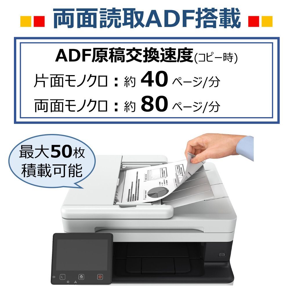5インチカラータッチパネル、アプリケーションライブラリ、SEND Liteに対応。高速スキャン可能なスタンダードモデル。