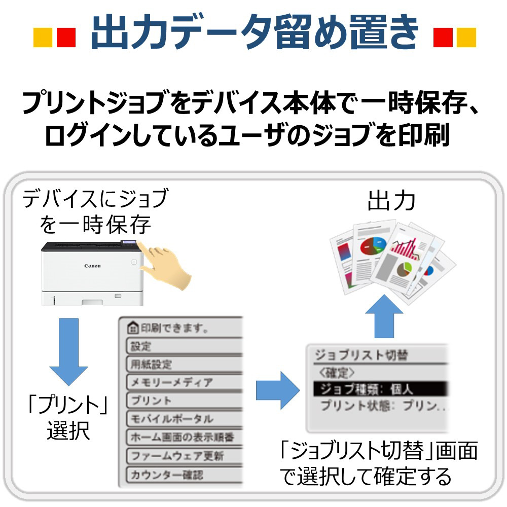 | 付属品 | トナーカートリッジ062スターター、ユーザーソフトウエアCD-ROM(プリンタードライバー)、設置ガイド「はじめにお読みください」、「保証登録のお願い」、コールセンターシール、電源コード(アース線付き) ※スタータートナーは本体初期同梱用のトナーカートリッジです。印刷可能枚数は6400ページになります(ISO/IEC 19752に基づきA4普通紙に片面連続印刷した場合の平均値)。 |