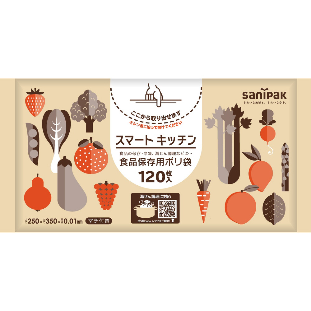 スマートキッチン 食品保存袋 M マチ付 0.01mm 120枚
