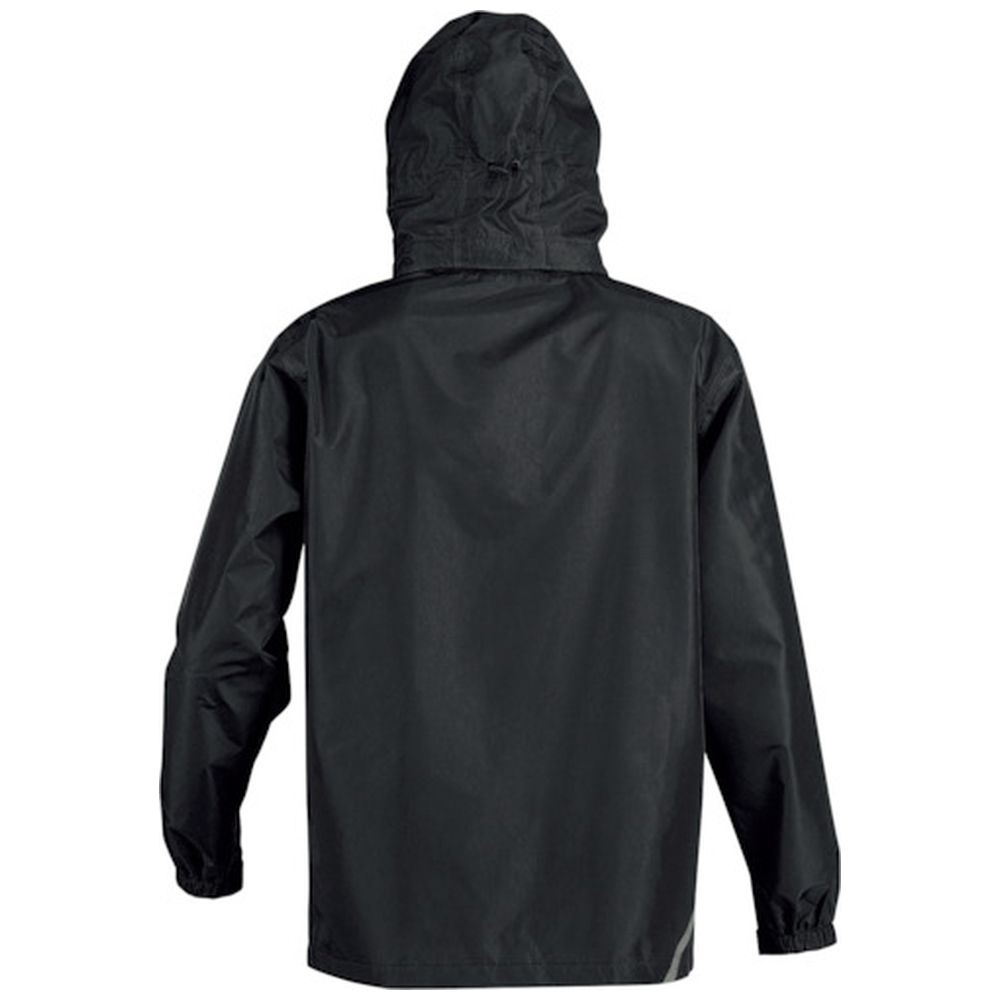■袖口ベルクロ調節可、背中裾に反射プリント、上下総裏メッシュ仕様の透湿レインスーツです。