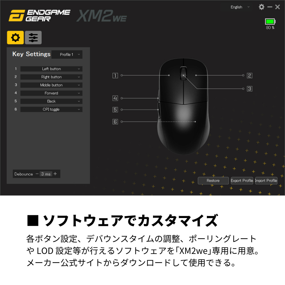 ゲーミングマウス XM2we ブラック EGG-XM2WE-BLK [光学式 /有線/無線(ワイヤレス) /7ボタン /USB]