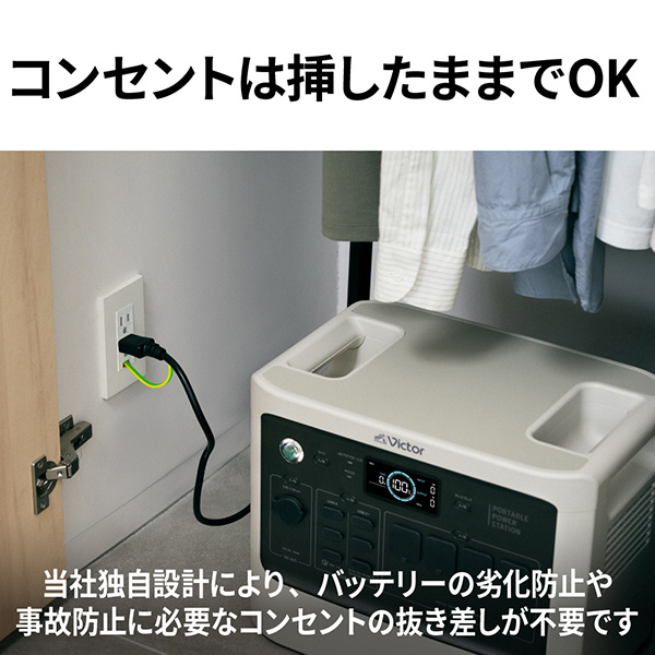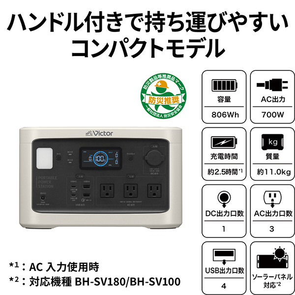 安全性の高い「リン酸鉄系リチウムイオン充電池」採用のポータブル電源 Victor「BN-RF800」