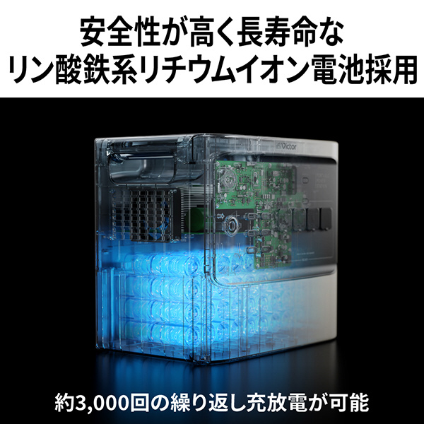 ■熱安定性に優れ、安全性が高い「リン酸鉄系リチウムイオン充電池」を採用し、約3,000回の充放電が可能