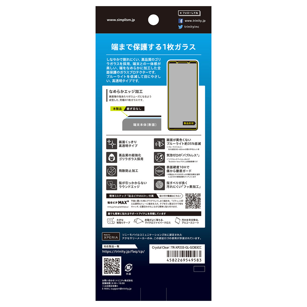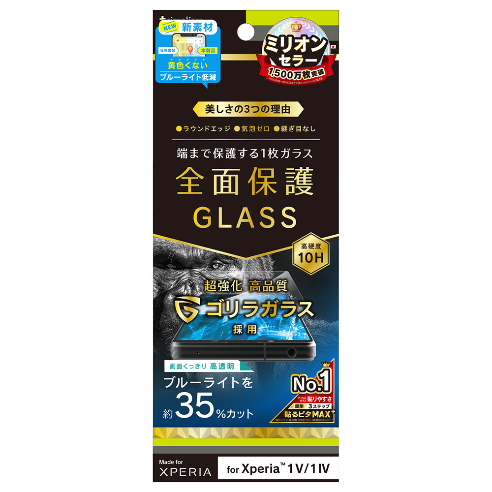 | 商品名 | Xperia 1 V / 1 IV ゴリラガラス 黄色くならないブルーライト低減 画面保護強化ガラス 光沢 【864】 |