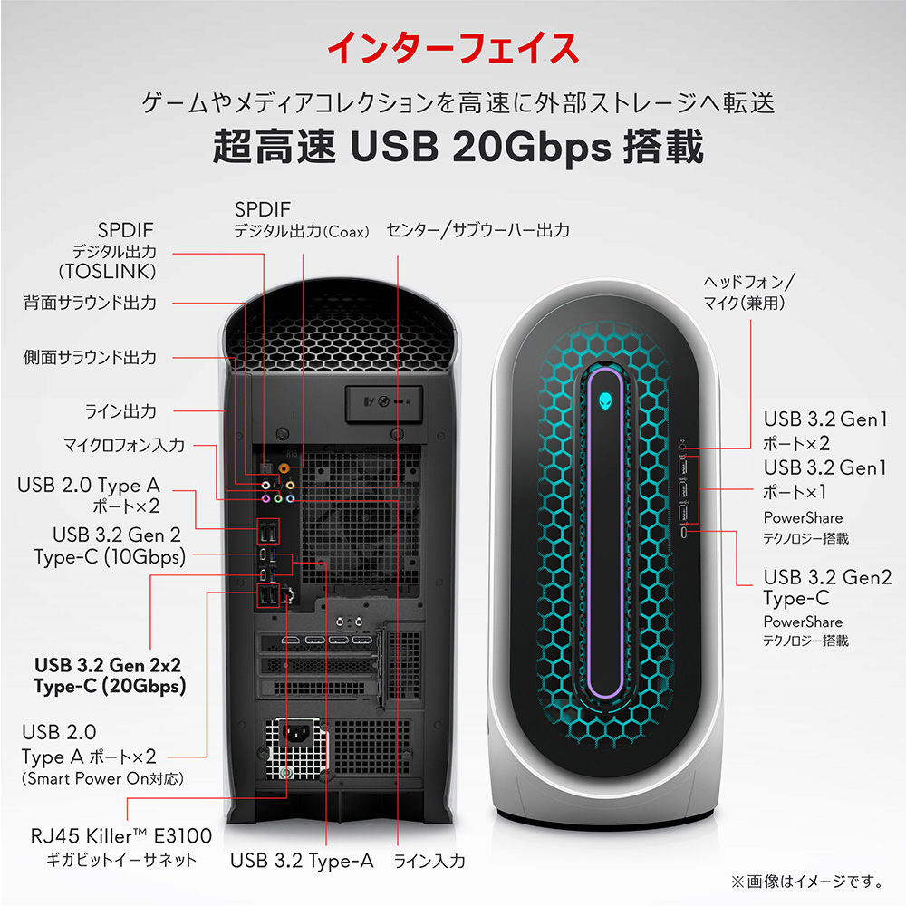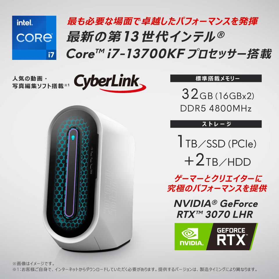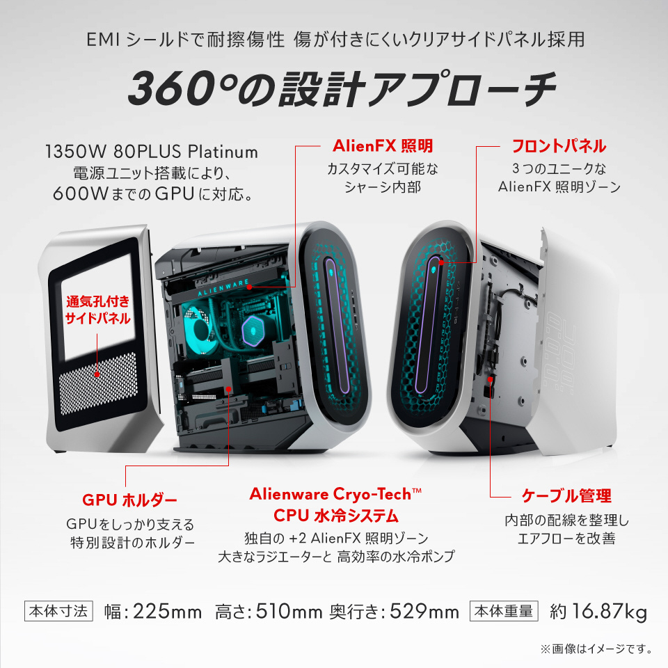 ゲーミングデスクトップパソコン Alienware Aurora R15 ルナライト(シルバーホワイト) DA90-DNLCW[RTX3070LHR]