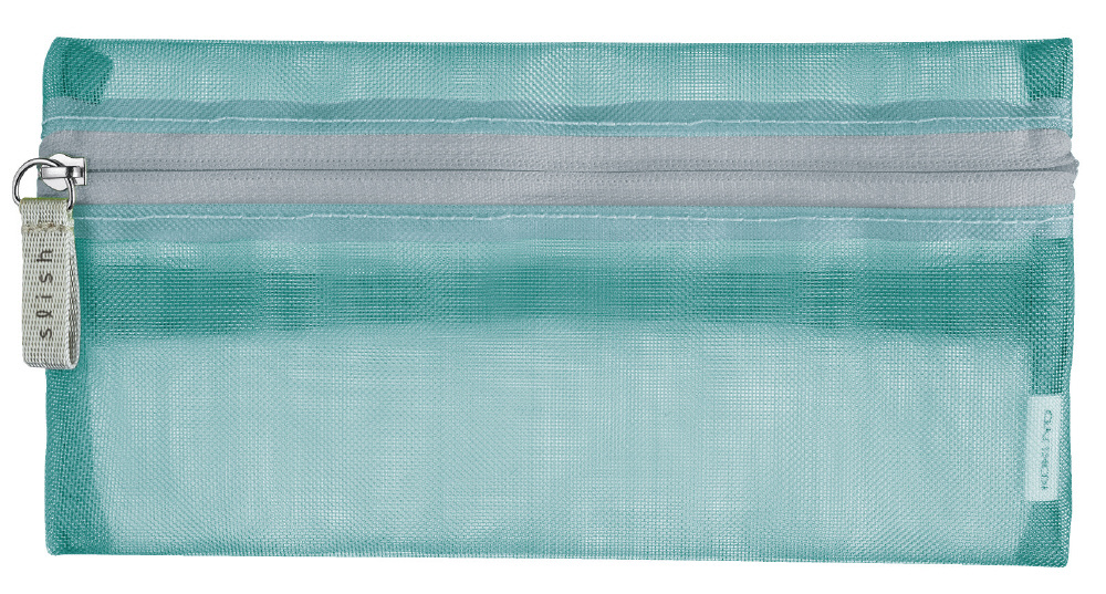 スリットポケットで出し入れスムーズ。メッシュペンケース。