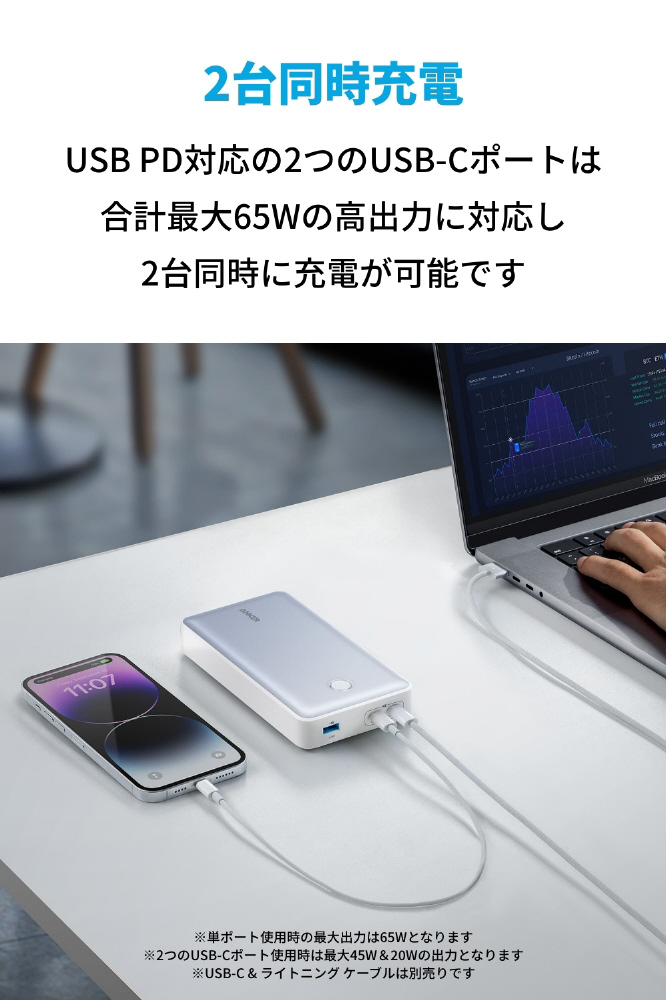 超大容量でMAX 65Wの高出力モバイルバッテリー