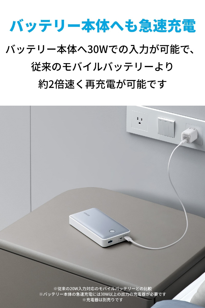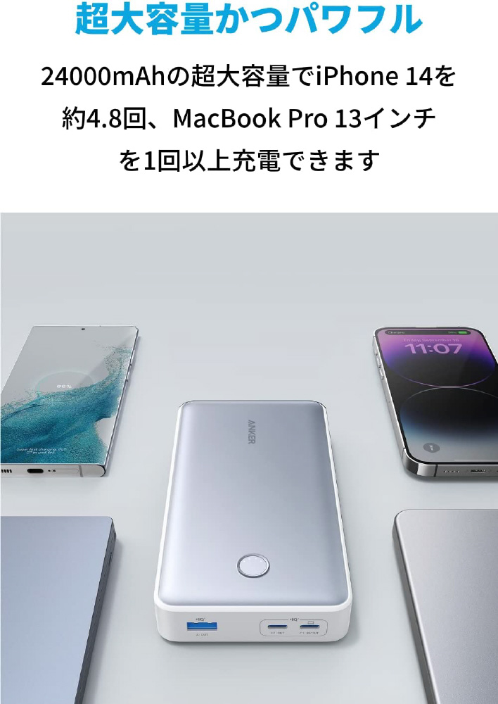 モバイルバッテリー 537 Power Bank 24000mAh(PowerCore 24000 65W) 付属ケーブル長: 0.6m ホワイト A1379N21 [USB Power Delivery対応 /3ポート] 【864】