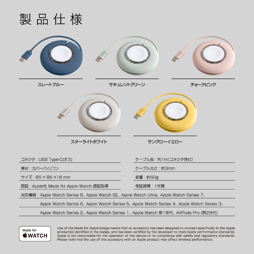 AppleWatch収納型磁器充電ケーブル 約1m