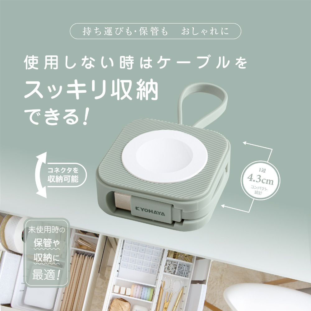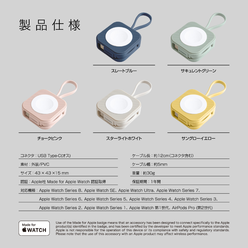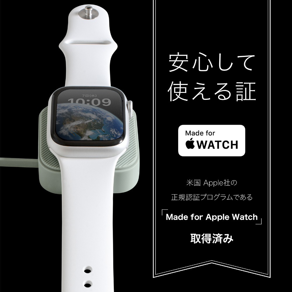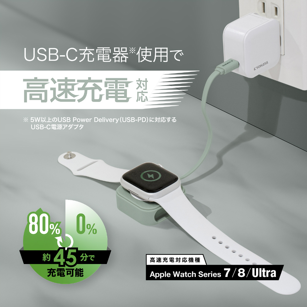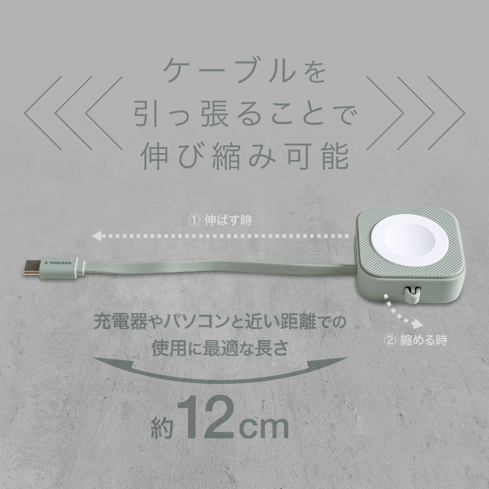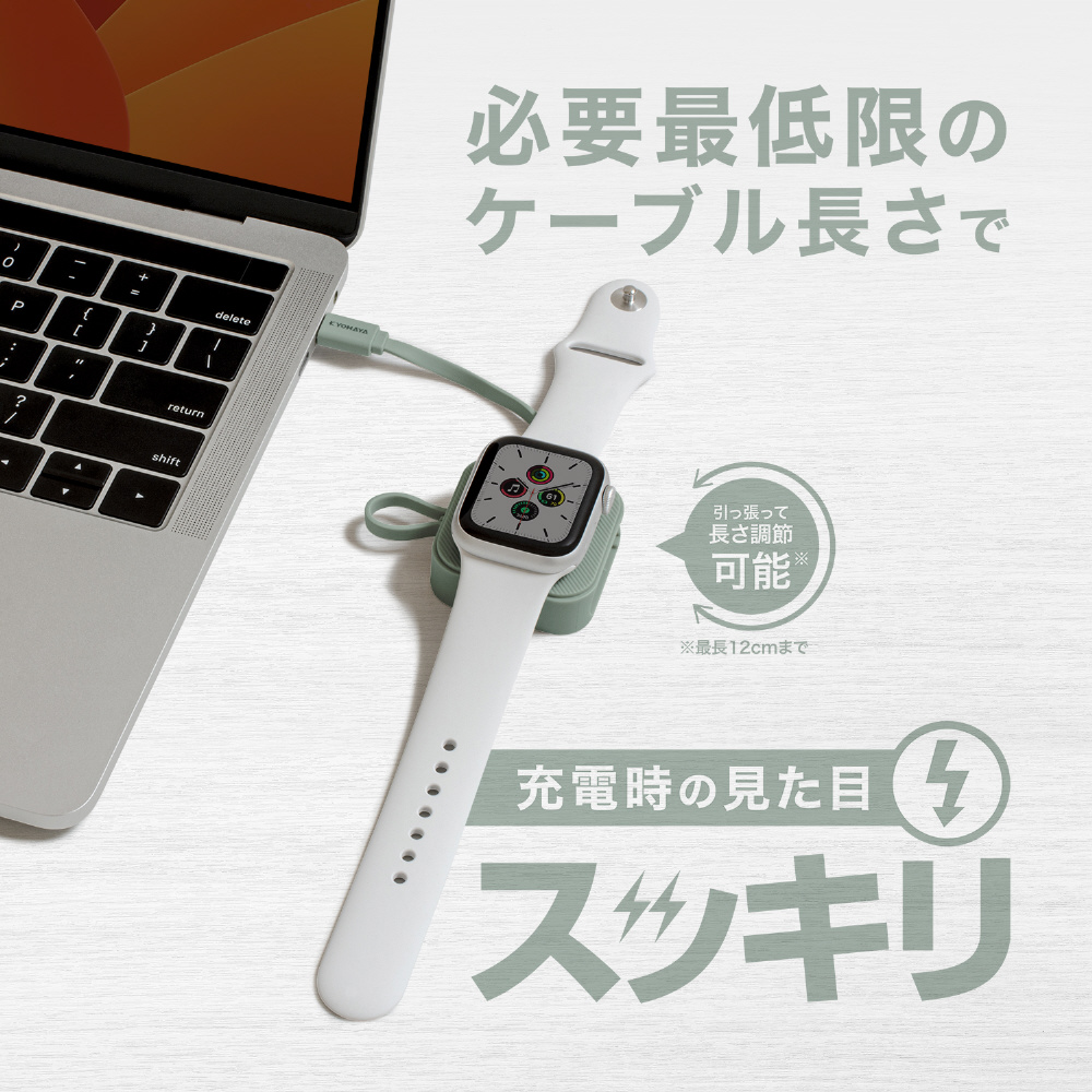 高速充電AppleWatchSeries7/8/Ultraでは高速充電に対応。コネクタを本体に収納できるので持ち運びに最適。