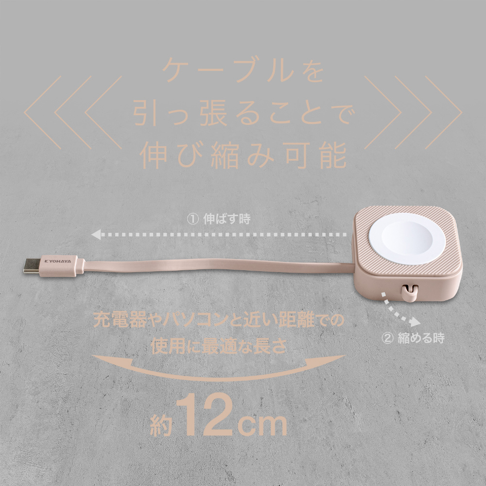 高速充電AppleWatchSeries7/8/Ultraでは高速充電に対応。コネクタを本体に収納できるので持ち運びに最適。