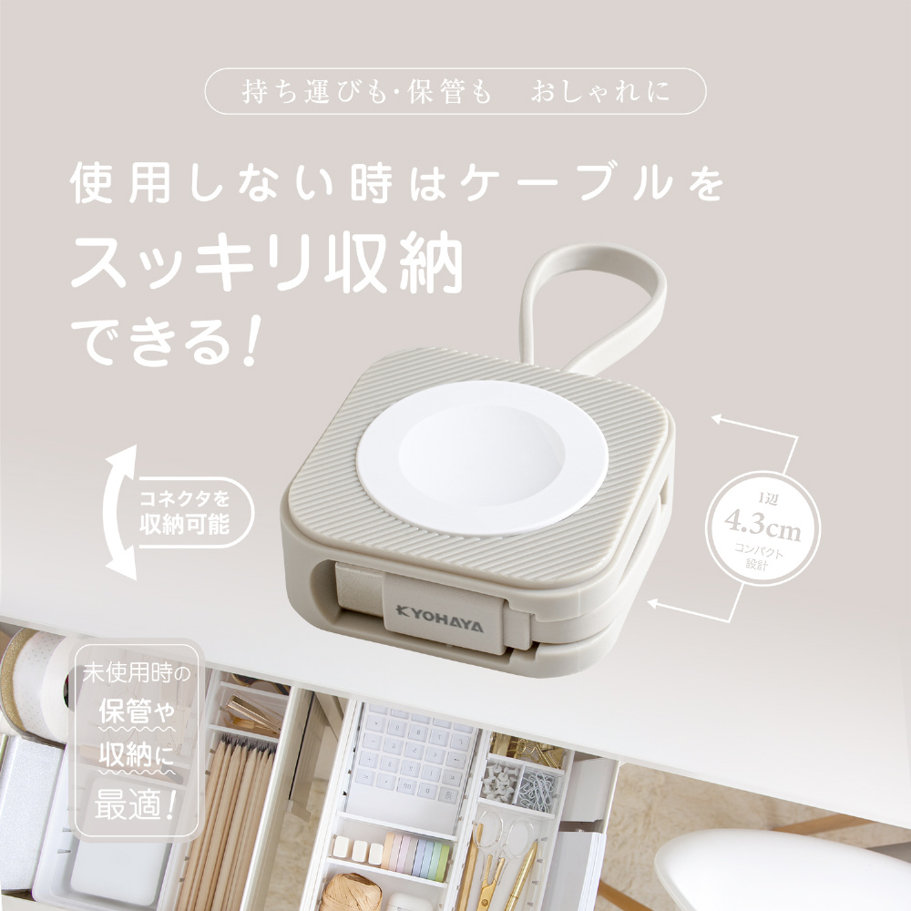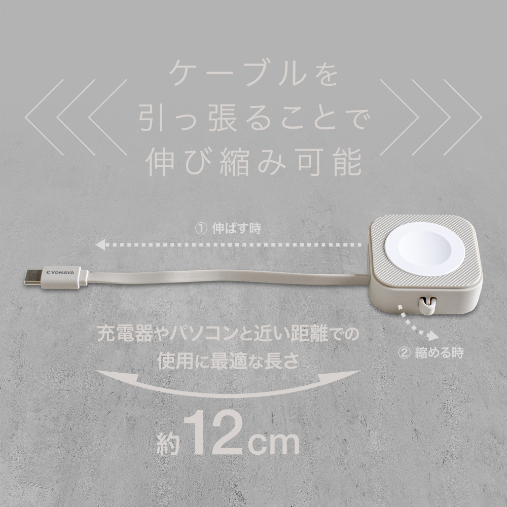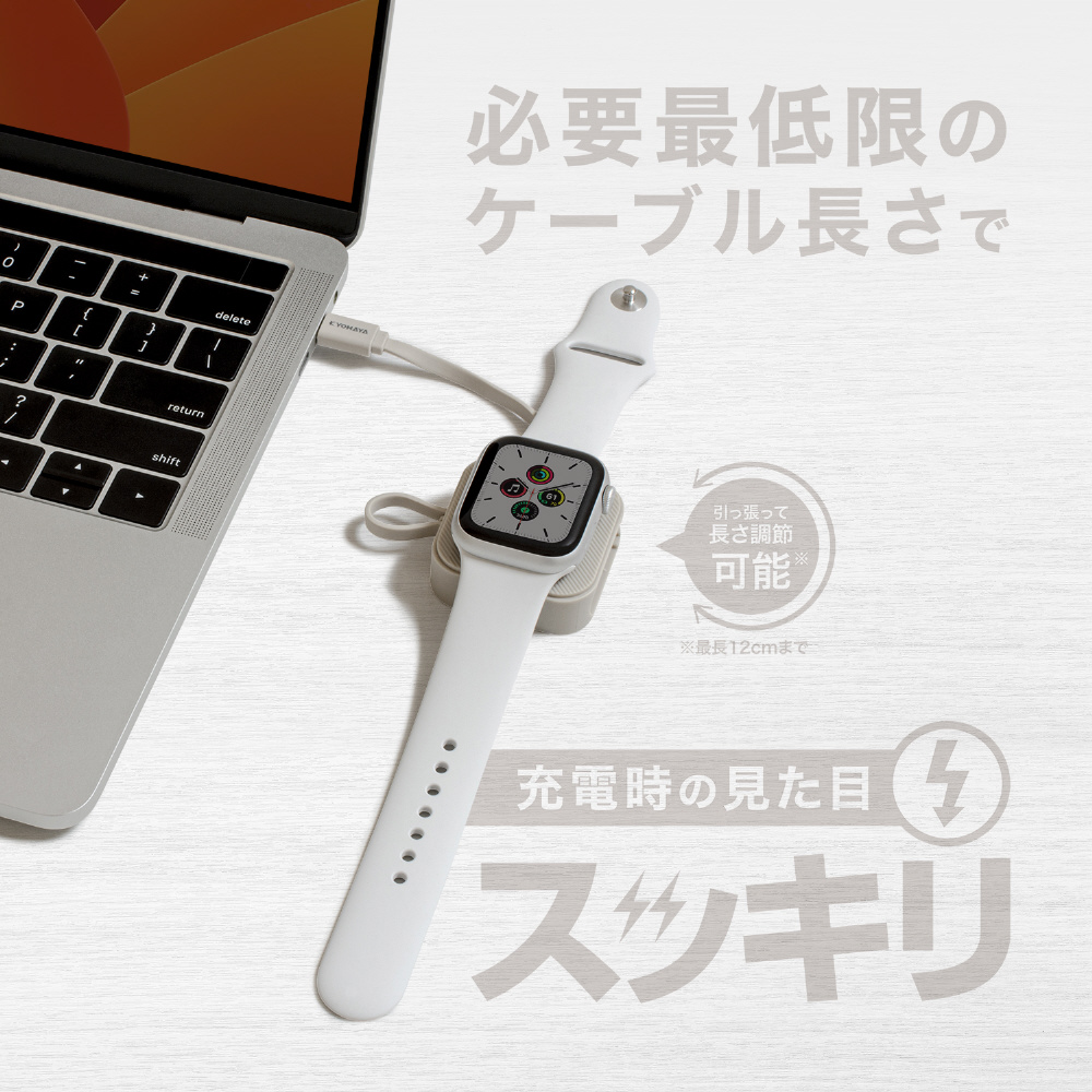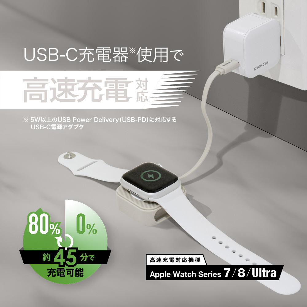 高速充電AppleWatchSeries7/8/Ultraでは高速充電に対応。コネクタを本体に収納できるので持ち運びに最適。