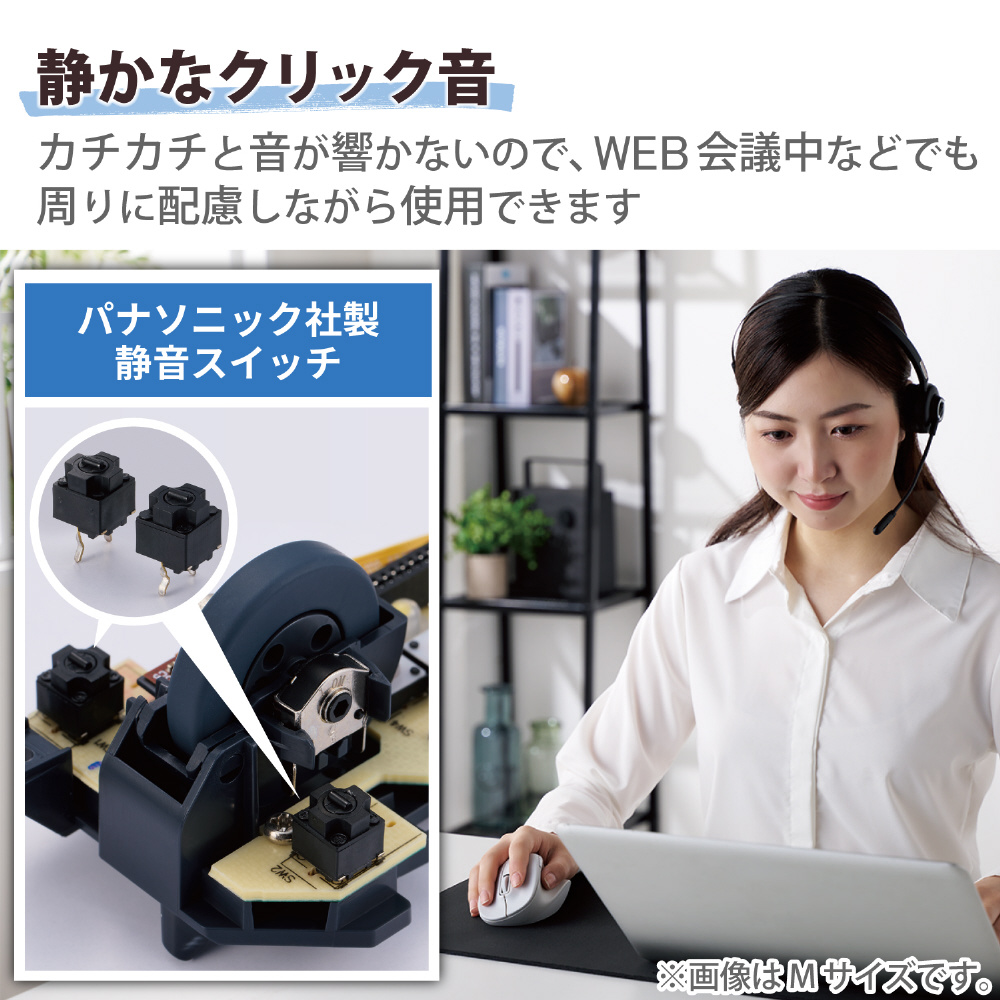 気になるクリックのカチカチ音が響かないため、会議中のパソコン操作や在宅勤務時の早朝・夜間の作業などでも気にせず使用できます。