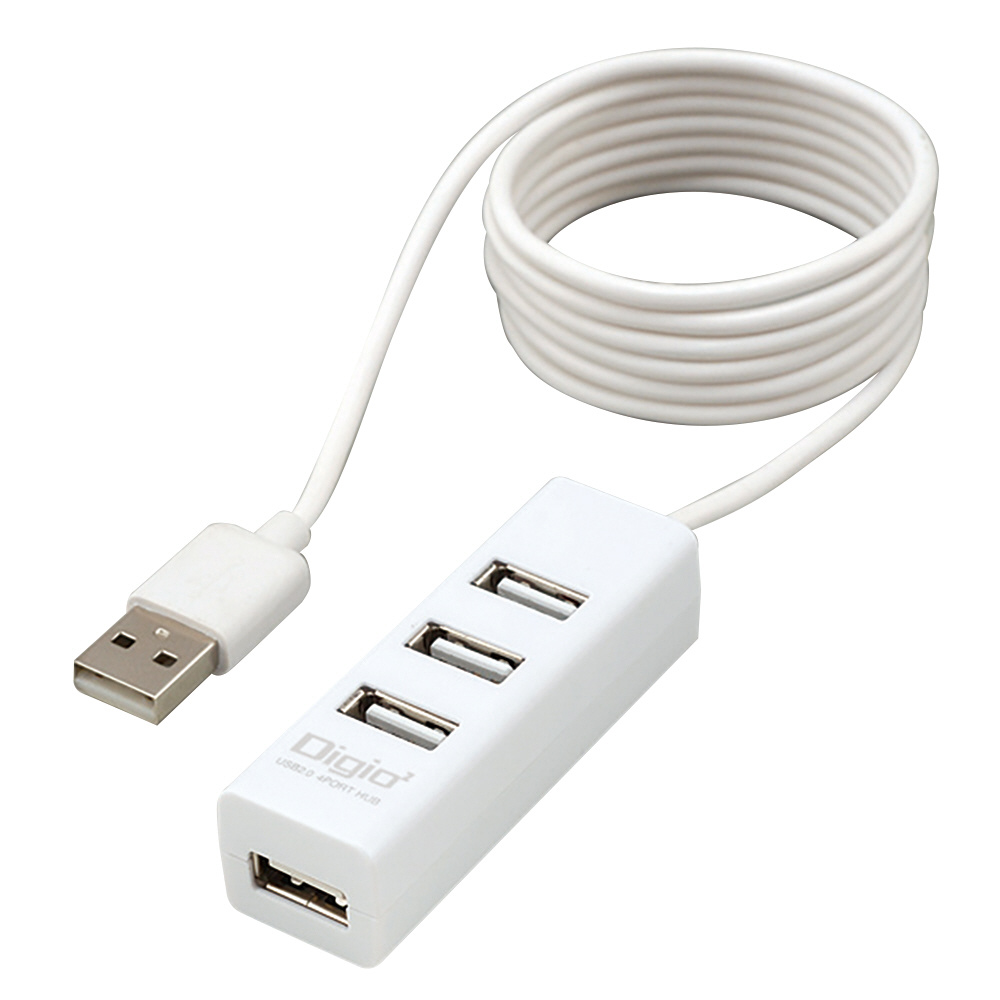 ケーブル一体型4ポートUSBハブ。ロングケーブル120cm。