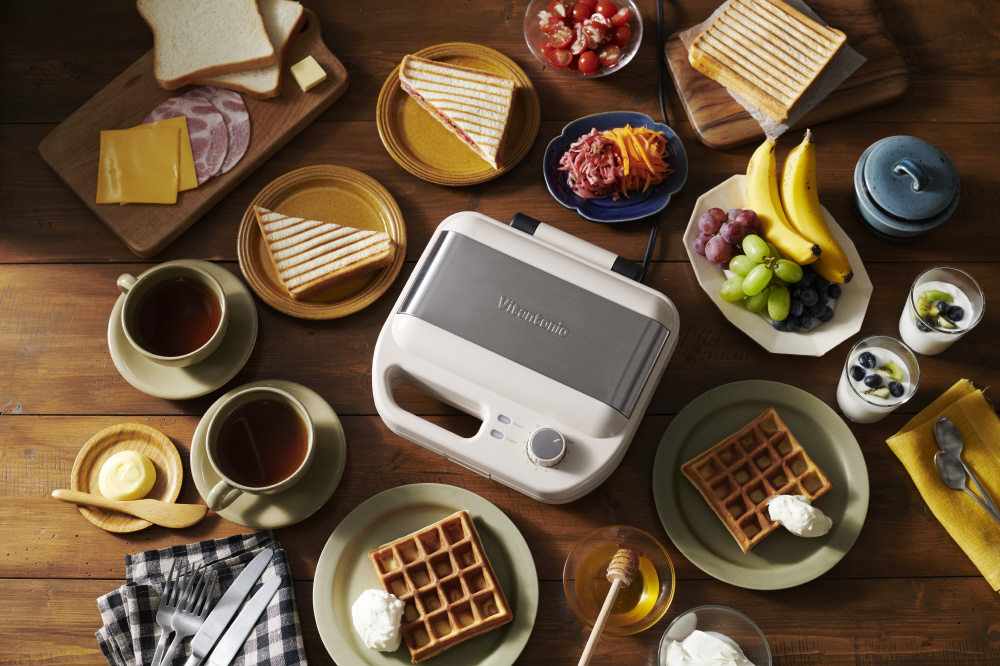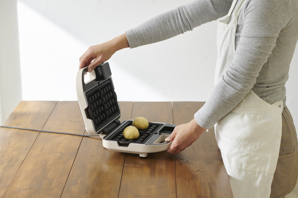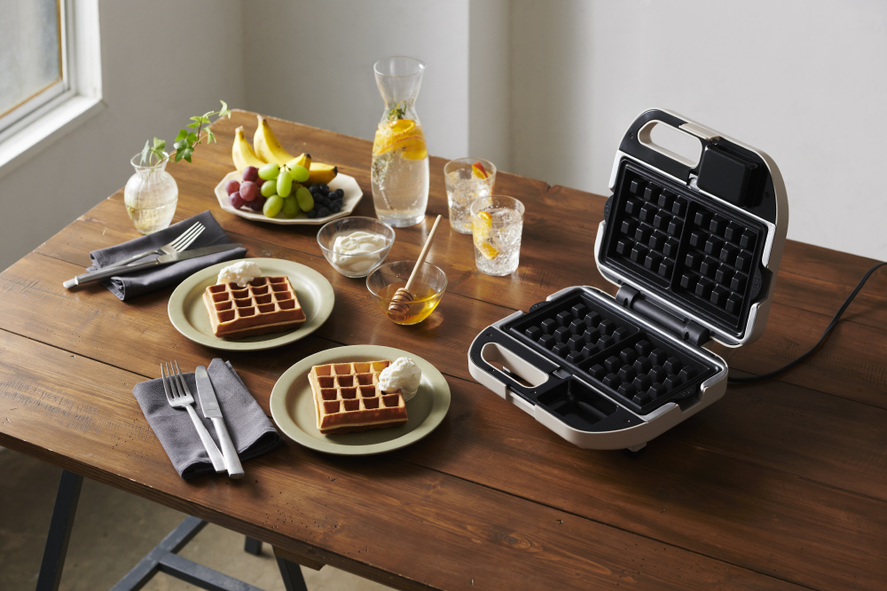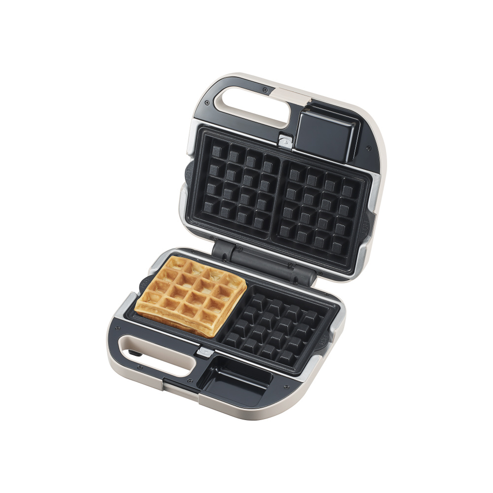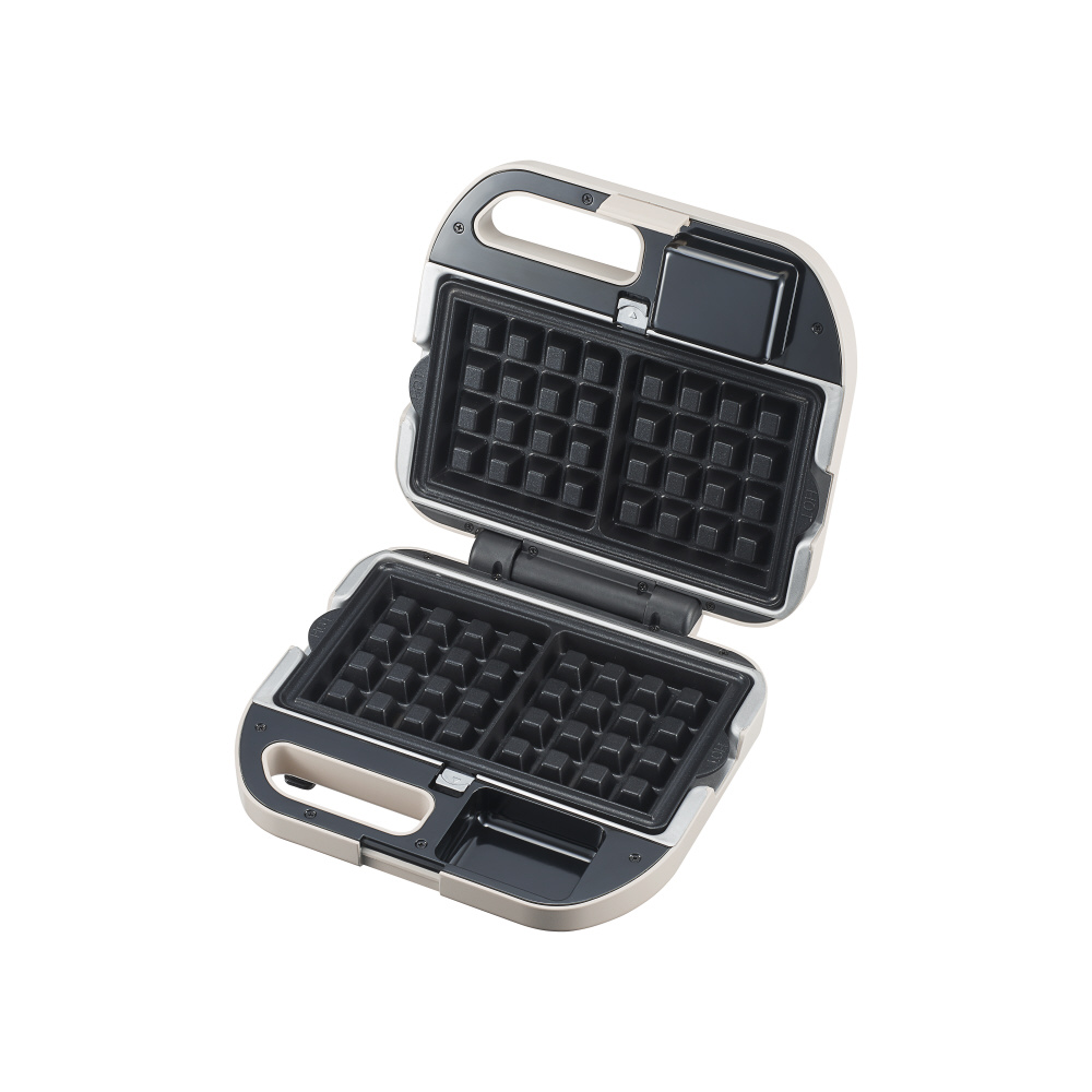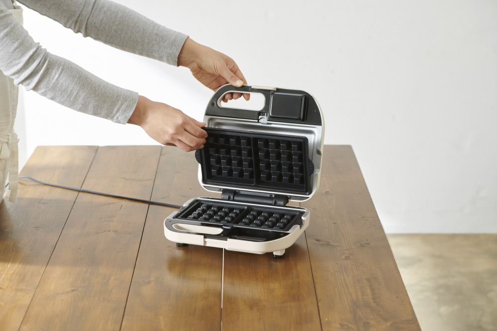 ワッフル、ホットサンド、トーストが1台でOK!深型プレートで本格的なワッフルが焼き上がり、耳付きホットサンドも作れます。