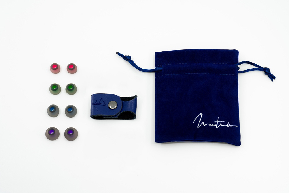ケーブルには、シルバーコートOFCとOFCのハイブリッドケーブルを採用し、音の分離感向上と優れた定位感を実現しました。コネクターにPentaconn earを採用し、「右コネクター側に突起」をつけたことで暗闇でも左右判別がしやすくなっています。また、イヤーピースには、シリコンゴムの軟度を僅かに下げたことにより、長時間の使用でも負担が少ない優れたフィッティングを実現するオリジナルイヤーピース「iSep01」を4サイズ(S/MS/M/L)標準付属しました。その他本革コードリール、キャリングポーチなど充実の付属品となっています。