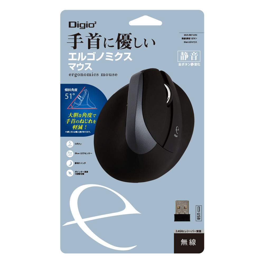「無線 静音5ボタン BlueLEDエルゴノミクスマウス」