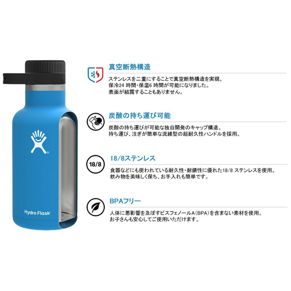 ビールの持ち運びはグロウラー、保冷・保温の両機能を持つ全断熱ボトル【1.9L】