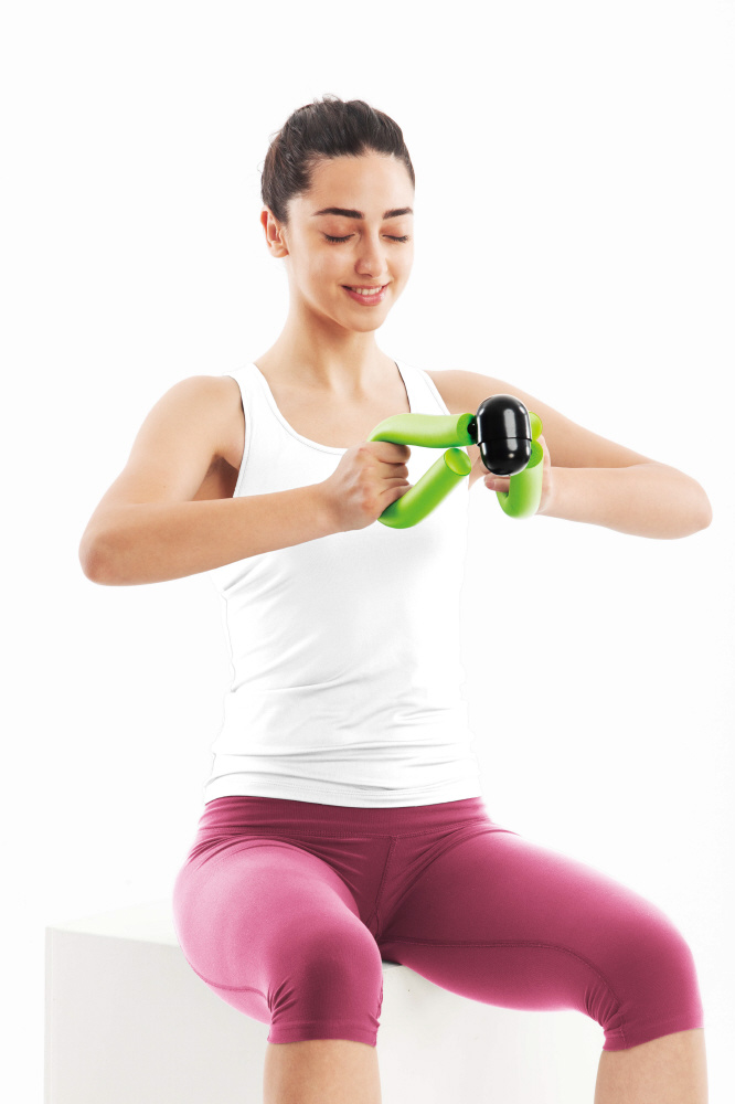 ももトレを両手で持ち、力を入れてたり、緩めたりを繰り返します。大胸筋や二の腕の引き締め効果が期待出来ます。