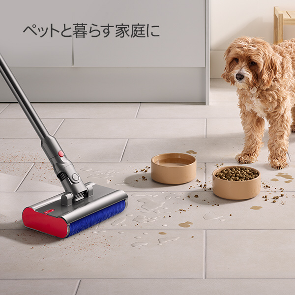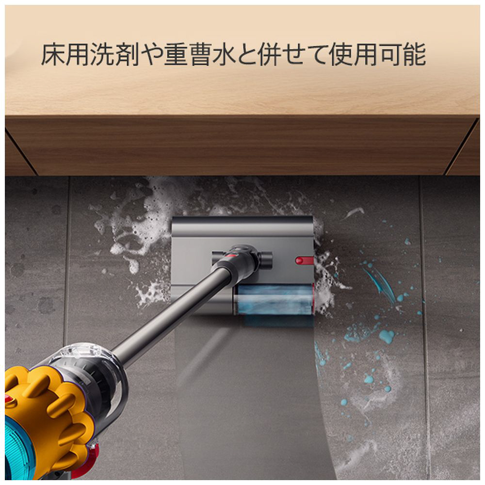 ダイソンの最新テクノロジーにより、一台で水拭きだけでなく、ゴミの可視化(*2)や、毛絡みを防止しながらの吸引が可能に。