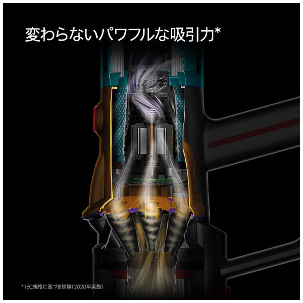 *1 Dyson Digital Slimコードレスクリーナーとの比較。IEC(国際電気標準会議)規格62885-4 5.8, 5.9に準拠した、クリアビンがゴミ満量時に強モードで使用した場合の自社による吸引力試験(2020年に実施)。