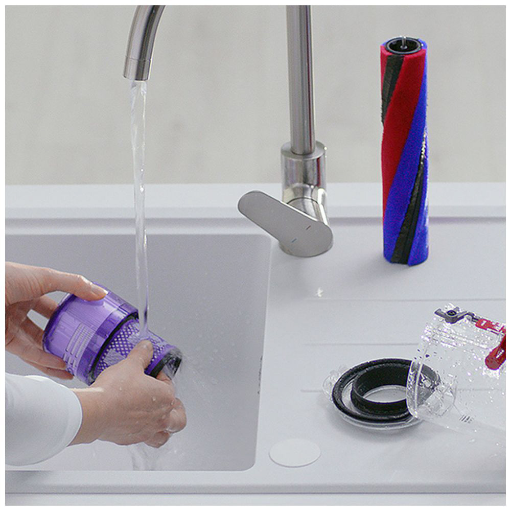 リアビンやフィルター、ブラシバーは簡単に取り外せて、水洗いが可能です。*