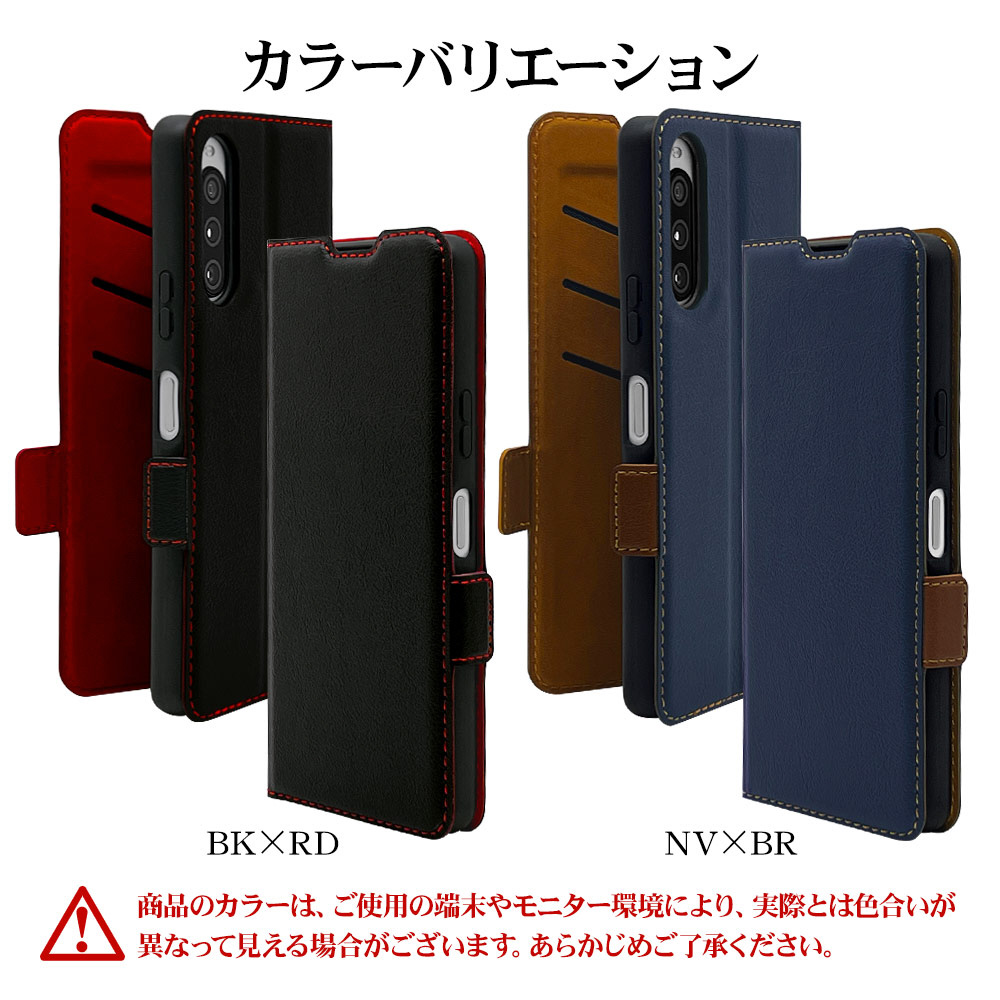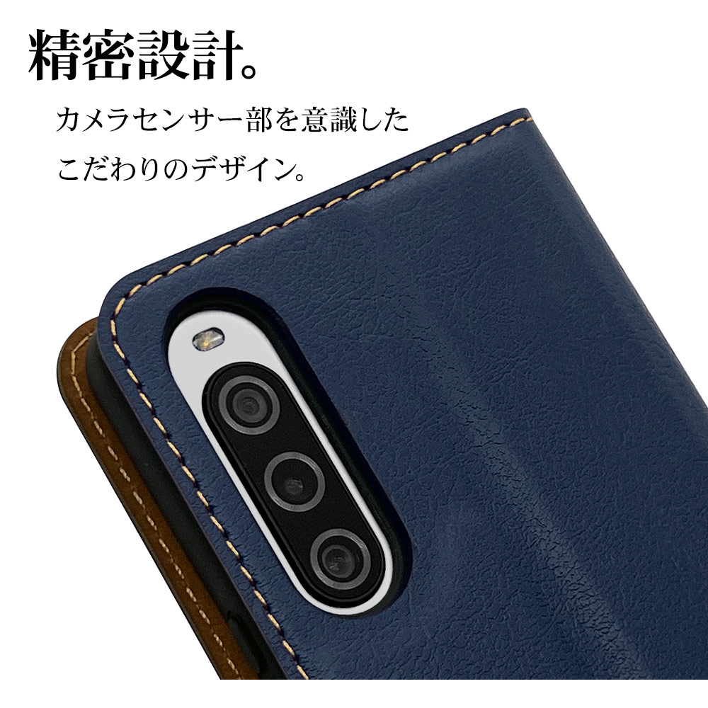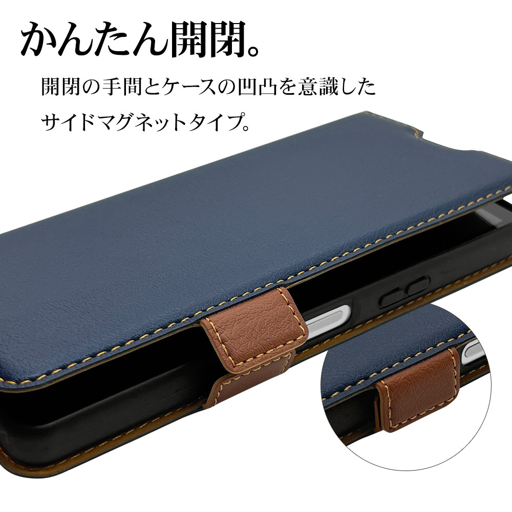Xperia 10V(SO-52D、SOG11、A302SO) 薄型手帳ケース サイドマグネット カード3枚 ネイビー×ブラウン 7531XP105BO
