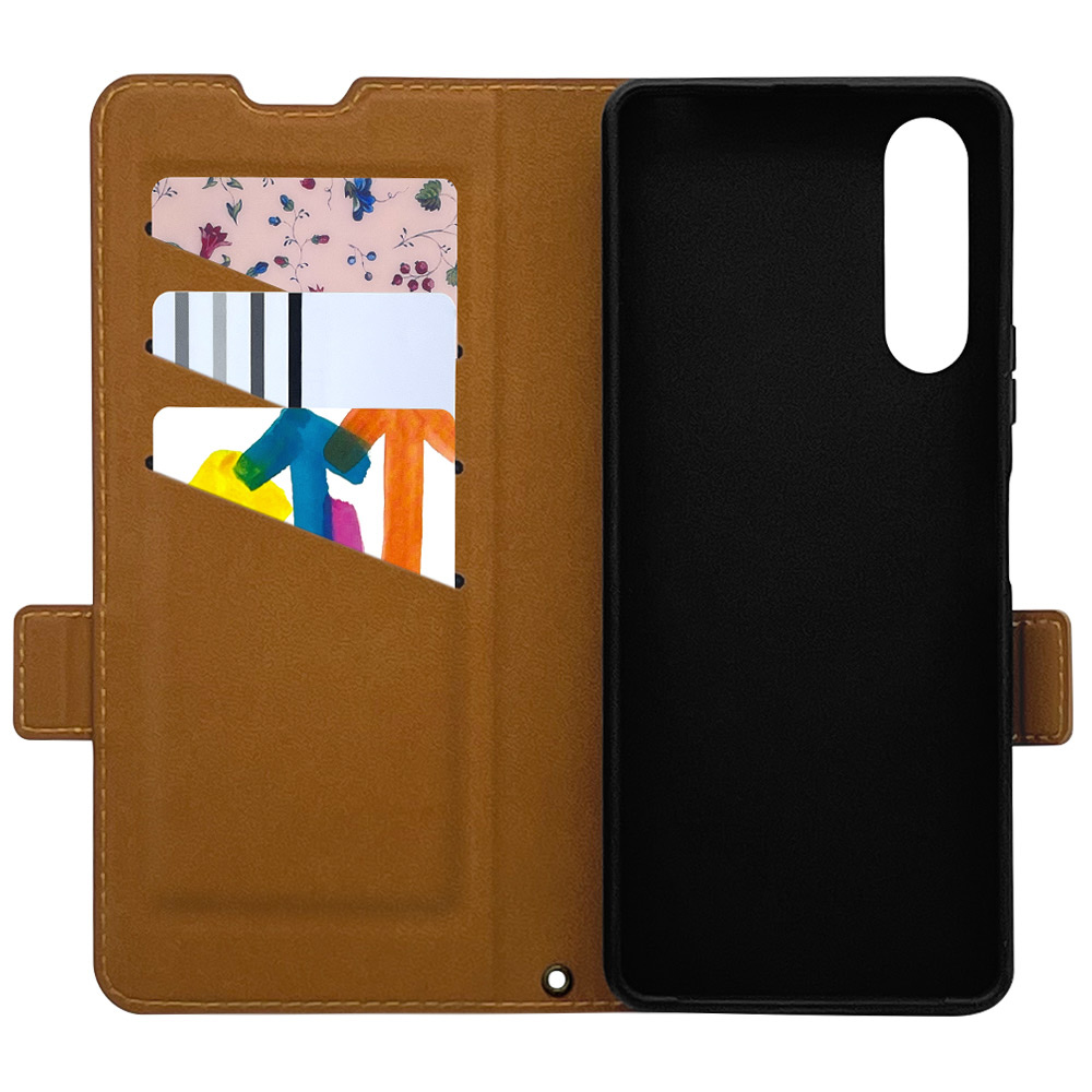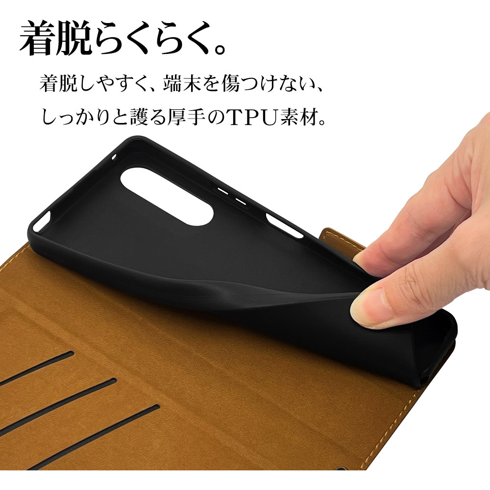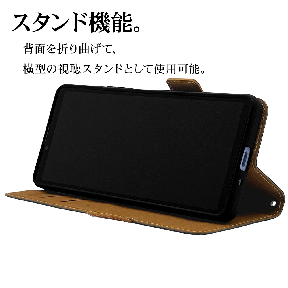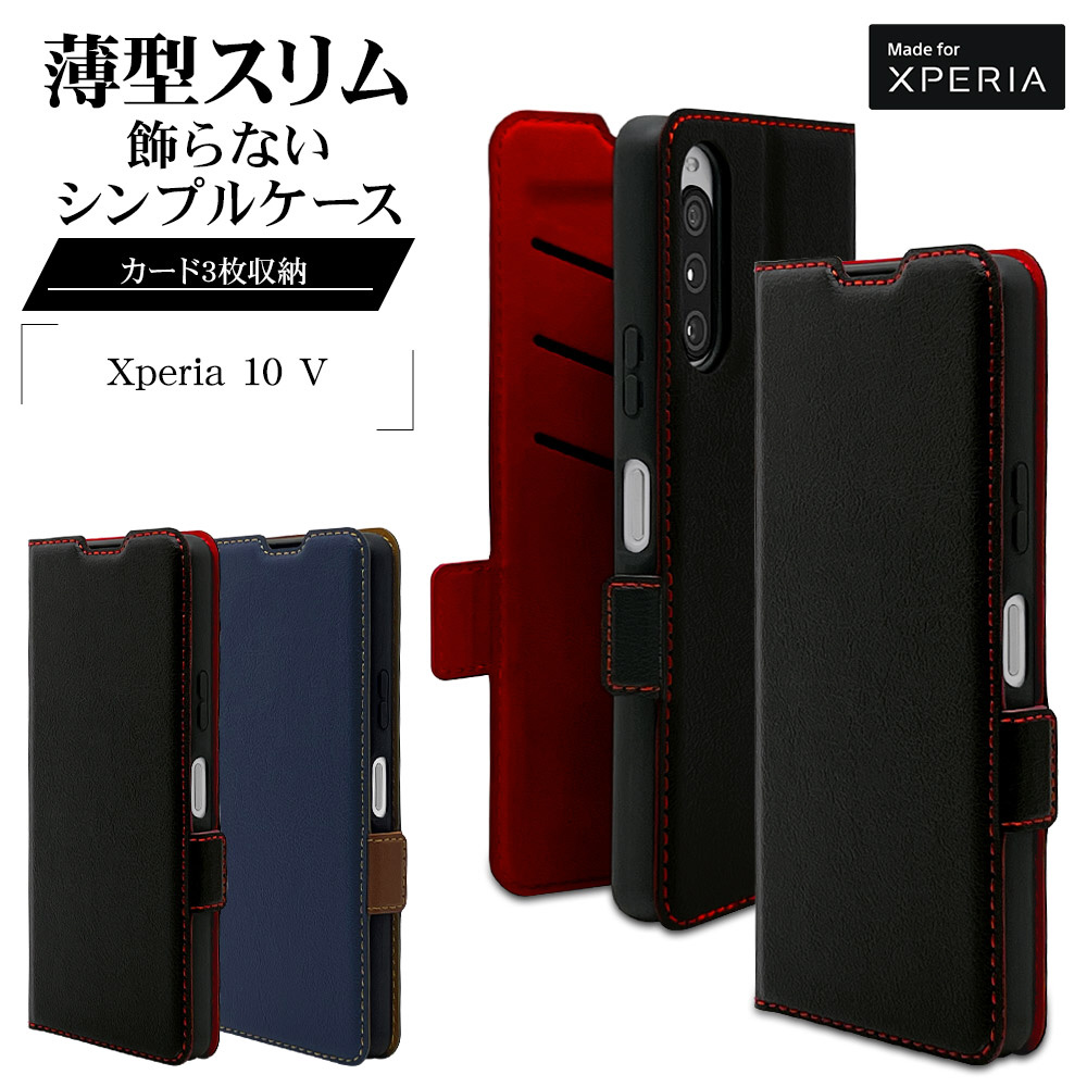 Xperia 10V(SO-52D、SOG11、A302SO) 薄型手帳ケース サイドマグネット カード3枚 ネイビー×ブラウン 7531XP105BO