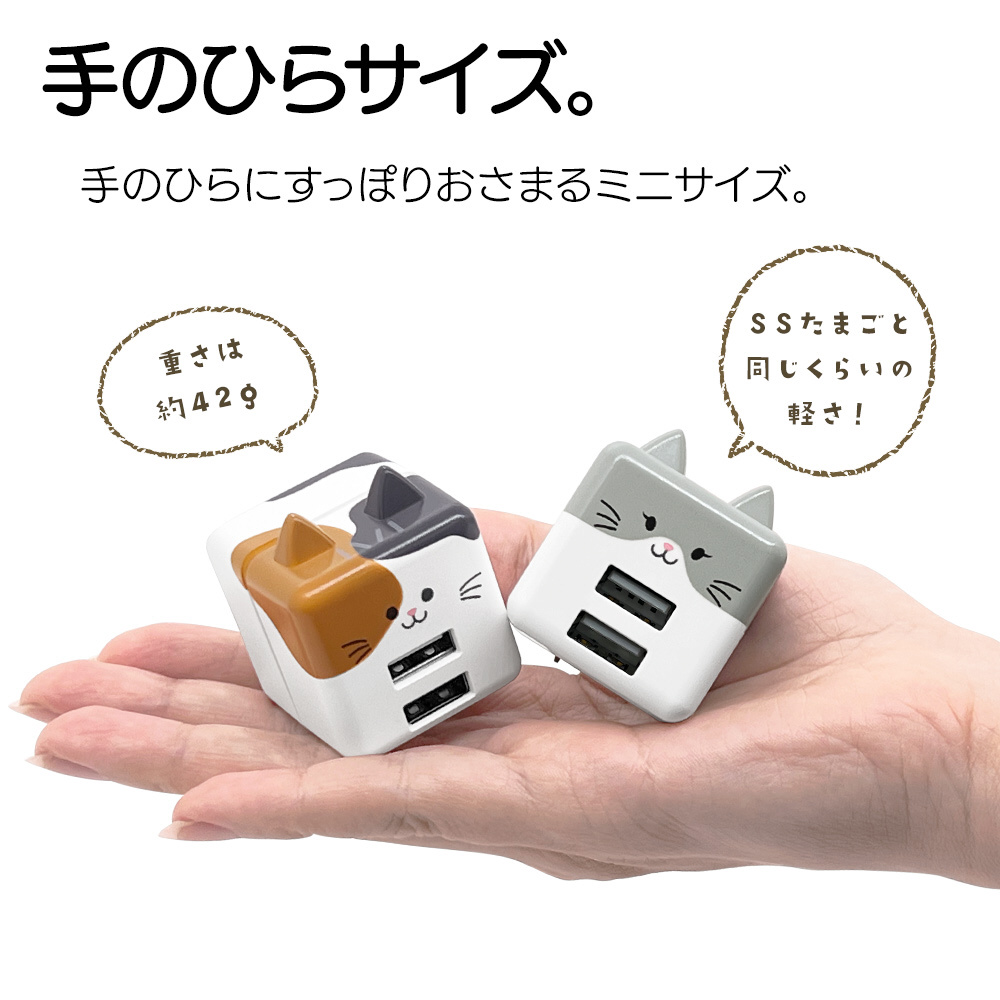 モバにゃー AC充電器 USB A×2ポート 2.4A カシラ RAC2A2A02KSR